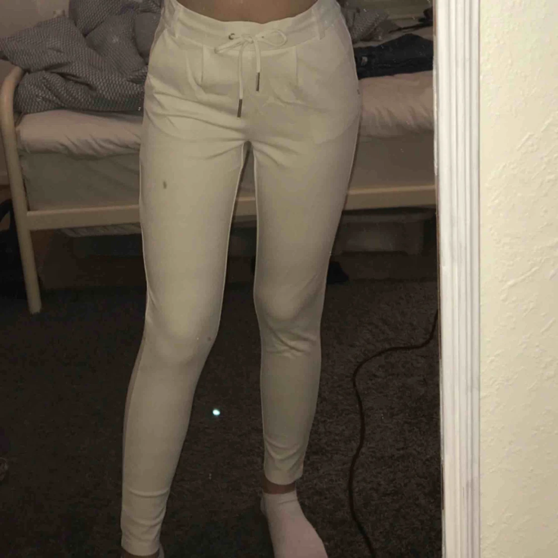 Fina kostymbyxor i stretchigt tyg från Only. De är i en offwhite färg och är hellånga. Superfina och använda max 3ggr. Köpta för ca 300kr
