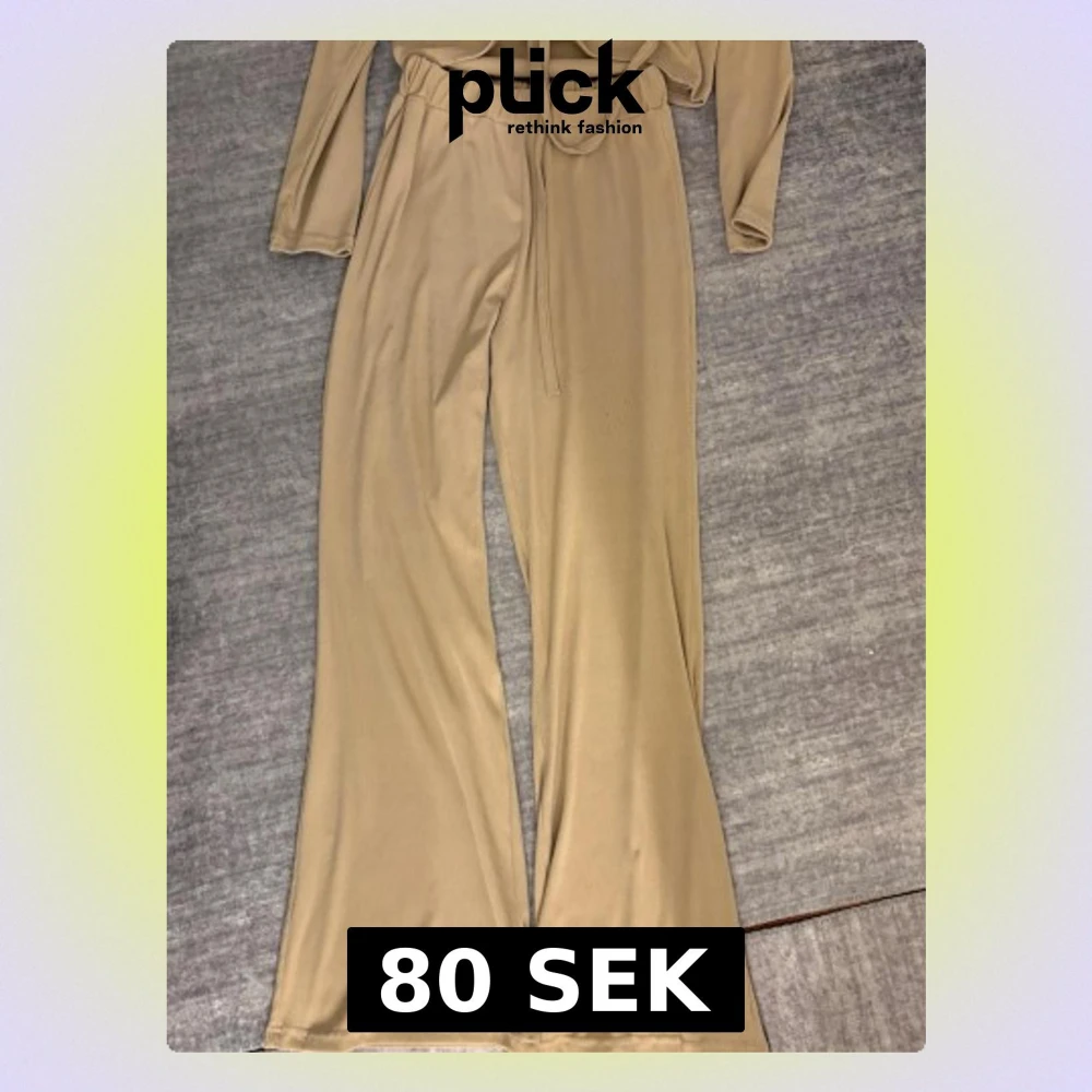Säljer mitt sett som är byxor med breda ben och elastisk midja. Samt en topp som har en snörning och är justerbar. Detta sett är gjort i ett mjukt, ribbat material som känns skönt mot huden. Köpt i Egypten därav storleken. Liten i storlek, står att storleken är L (42) men den passar från storlek M-L.