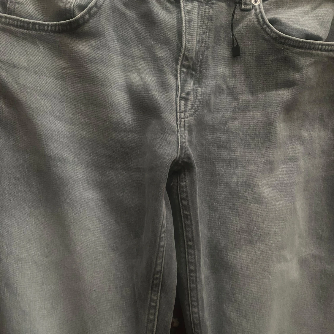 Snygga grå bootcut jeans med hög midja. Perfekta för en avslappnad stil med en modern twist. De har en klassisk femficksdesign och en bekväm passform.