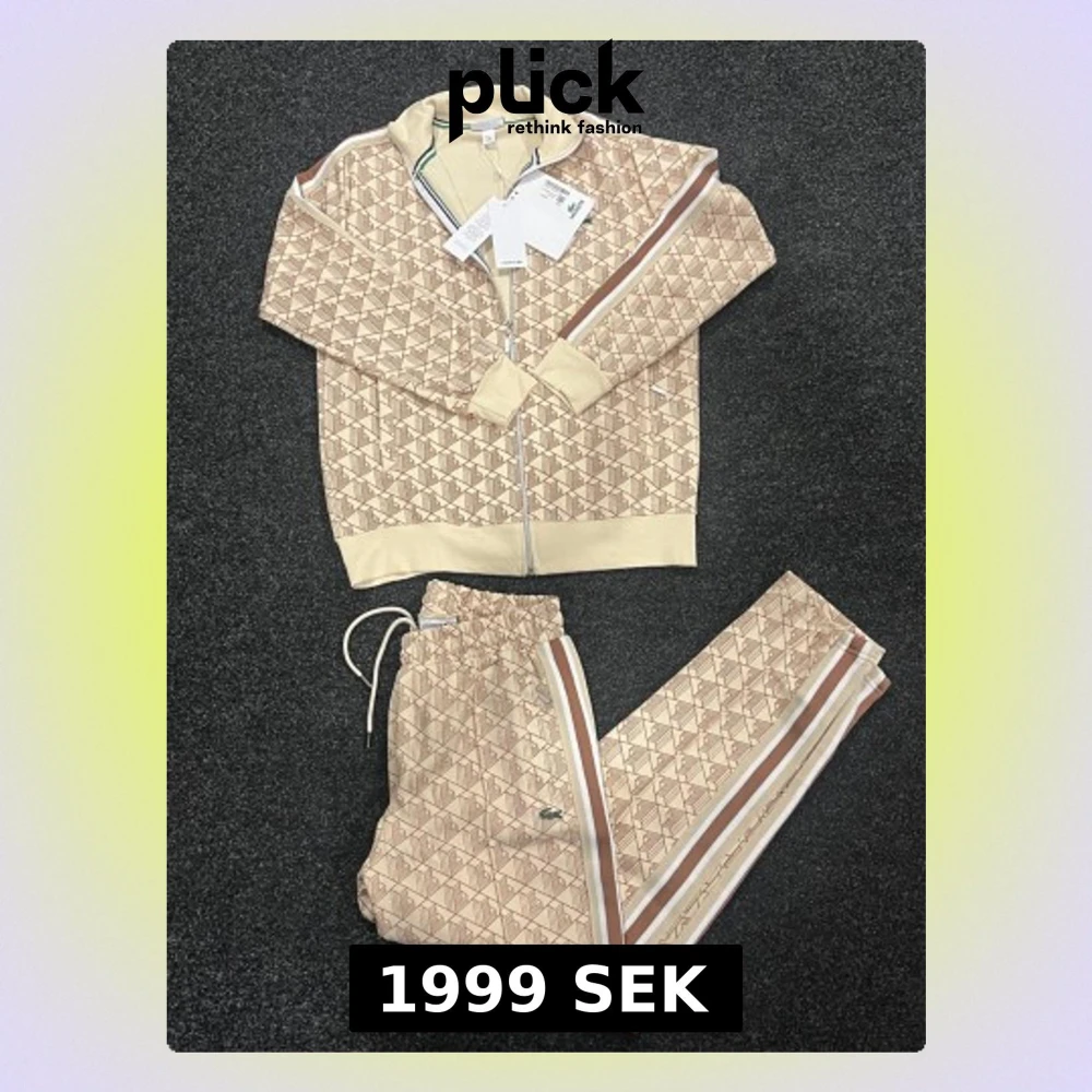 Snygga beige mjukisbyxor från Lacoste med brunt och vitt geometriskt mönster, bruna och vita sidoremsor samt klassisk krokodillogga. Byxorna har dragsko i midjan och är perfekta för en chill och sportig stil. Alla storlekar finns