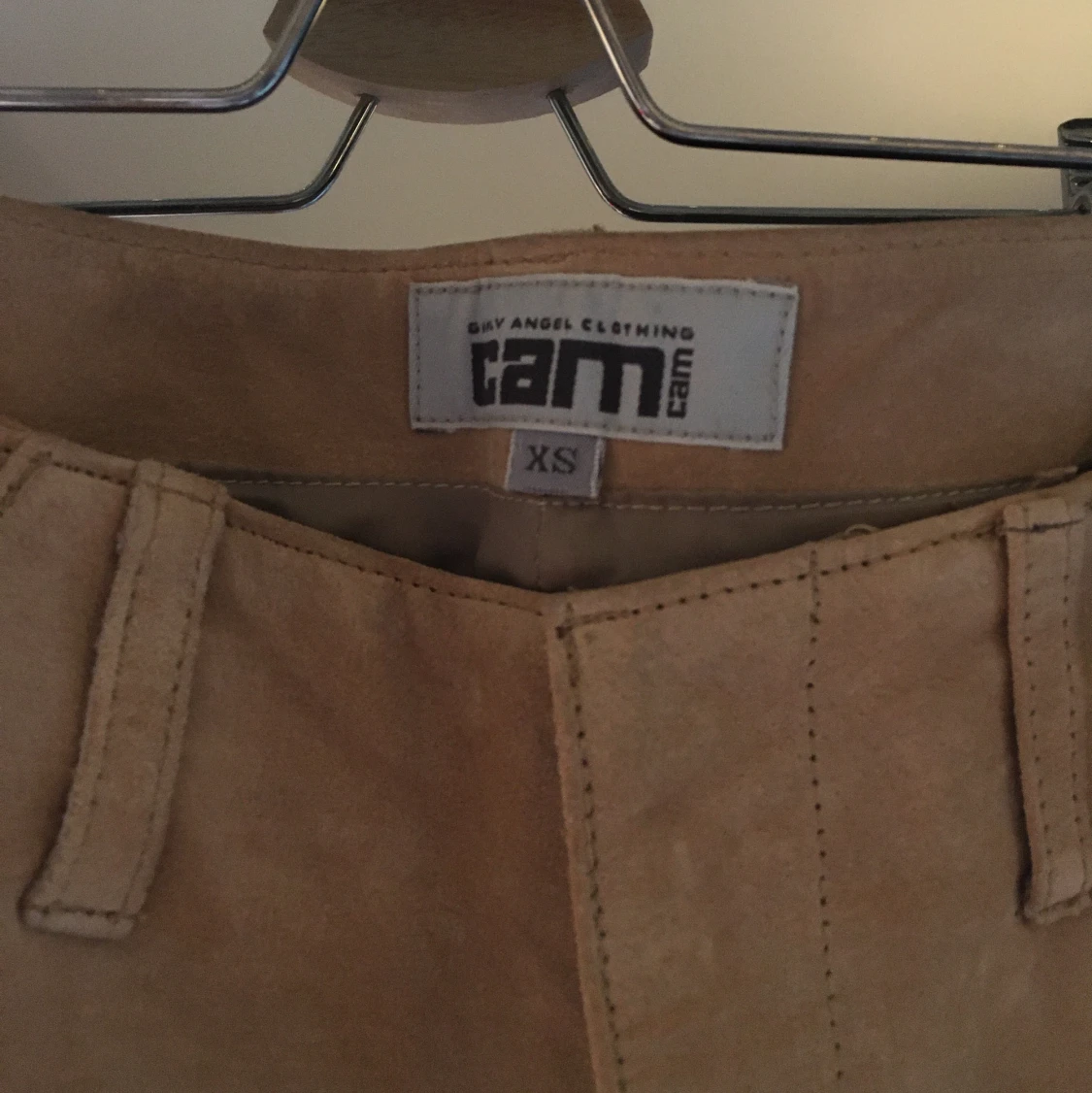 Ett par skitsnygga bruna mockabyxor som jag tyvärr måste sälja för att de är för långa för mig (är 158cm). Mid waist och bootcut, hela och rena med lite slitage då jag själv köpt dem second hand.