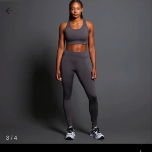 Snygga grå leggings perfekta för träning. De har en tight passform och är högmidjade för extra komfort. Materialet är stretchigt och andas bra, vilket gör dem idealiska för intensiva träningspass. Tyvärr så passar dom inte mig, bara provat så dom är helt nya