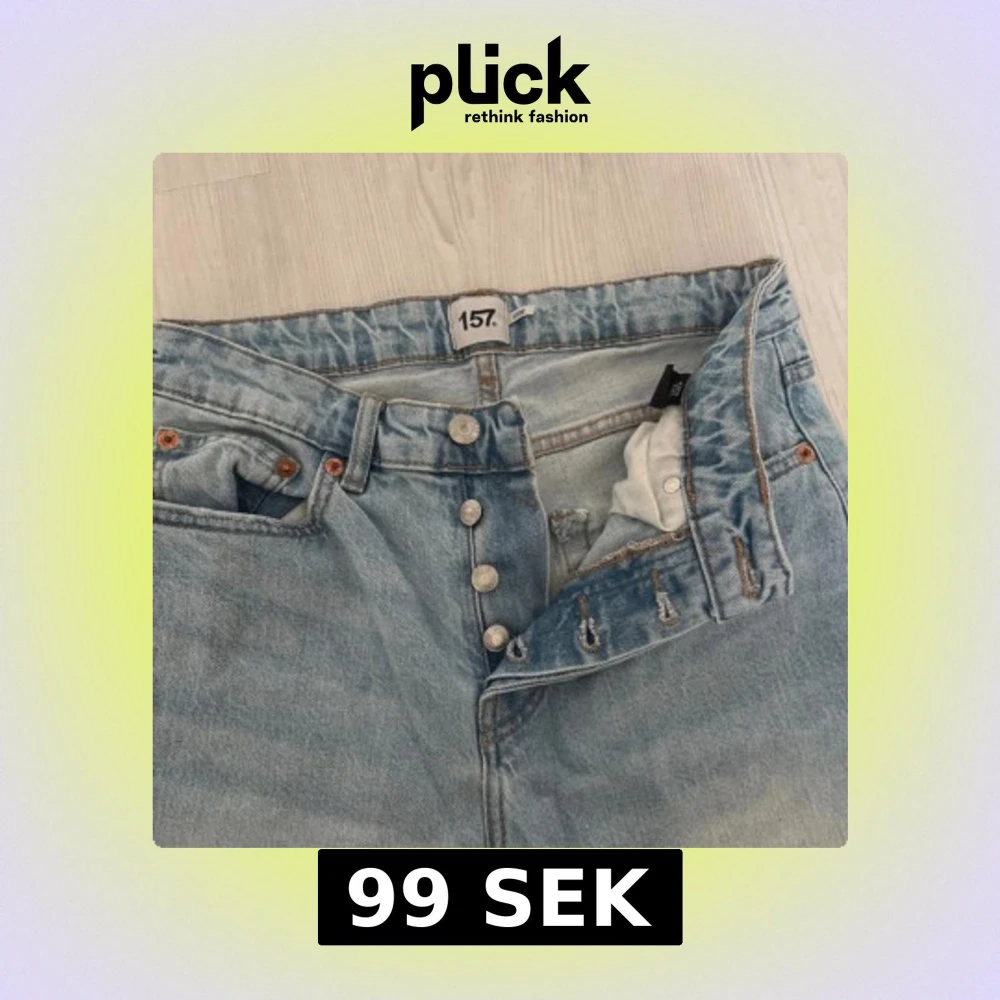 Ljusblå jeans från 157 med raka ben och klassisk femficksdesign. Jeansen har knäppning med flera silverfärgade knappar och subtila slitningar för en avslappnad look. Tillverkade i jeansmaterial med kontrastsömmar och normal passform.