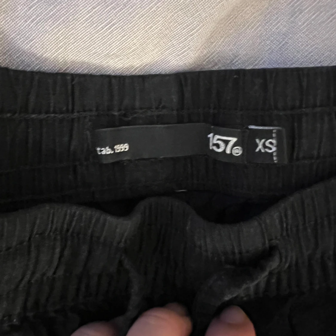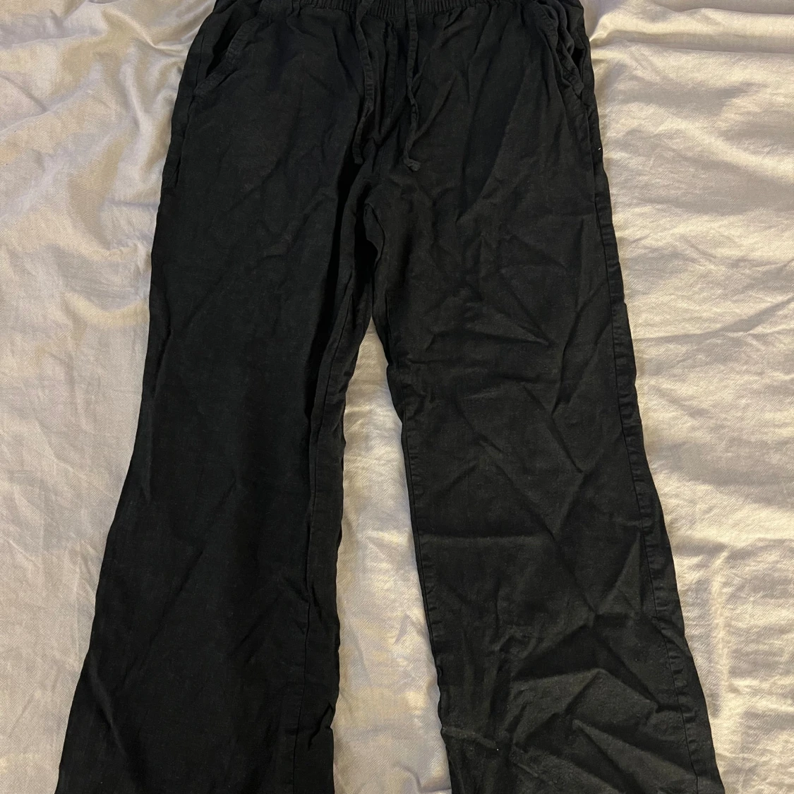 Svarta linnebyxor från Lager 157 i storlek XS. Byxorna har avslappnad passform, elastisk midja med snörning och raka ben.
