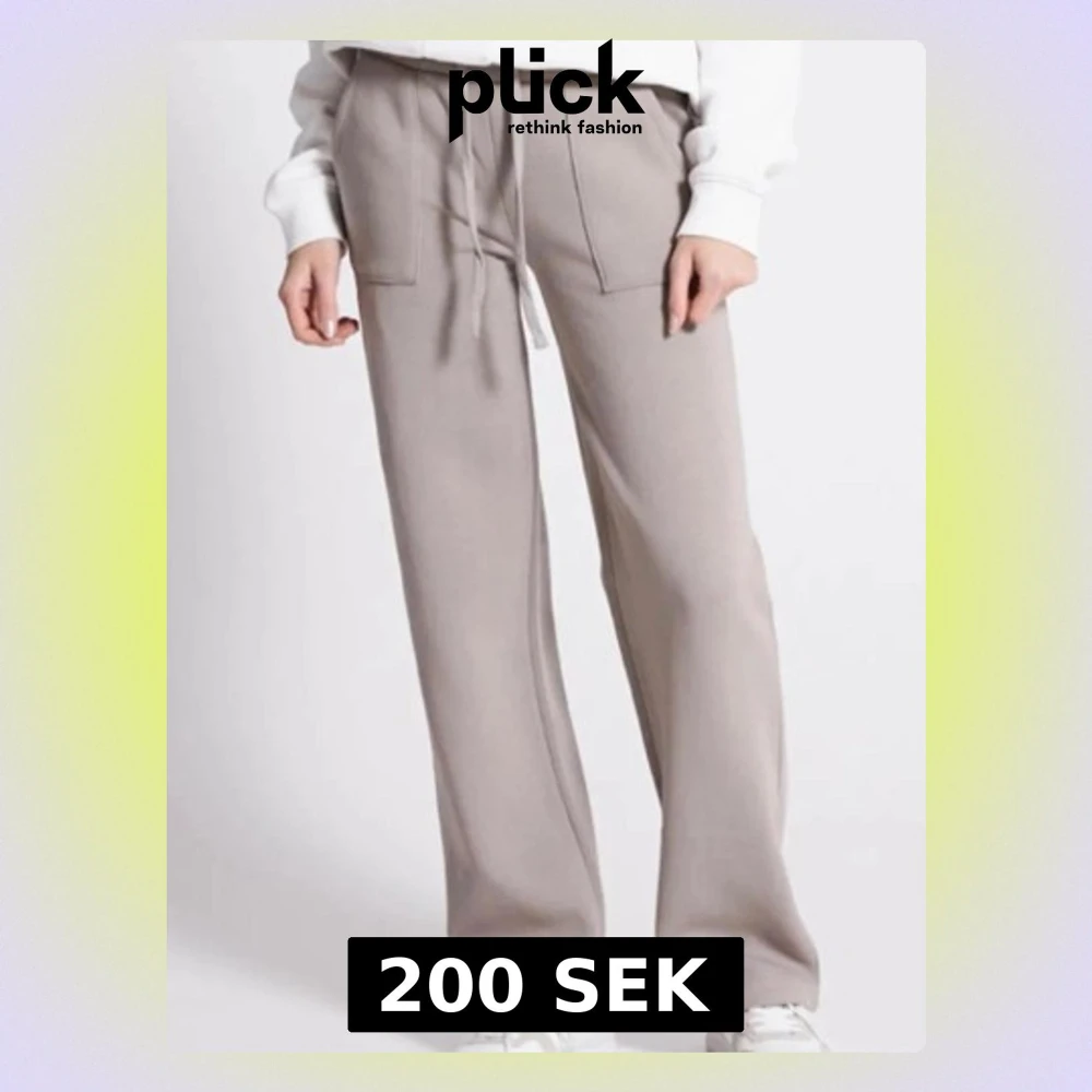 Snygga beige mjukisbyxor med breda ben och snörning i midjan. Byxorna har stora fickor framtill och är tillverkade i mjukt material som ger en chill och avslappnad vibe. Perfekta för en laidback stil.