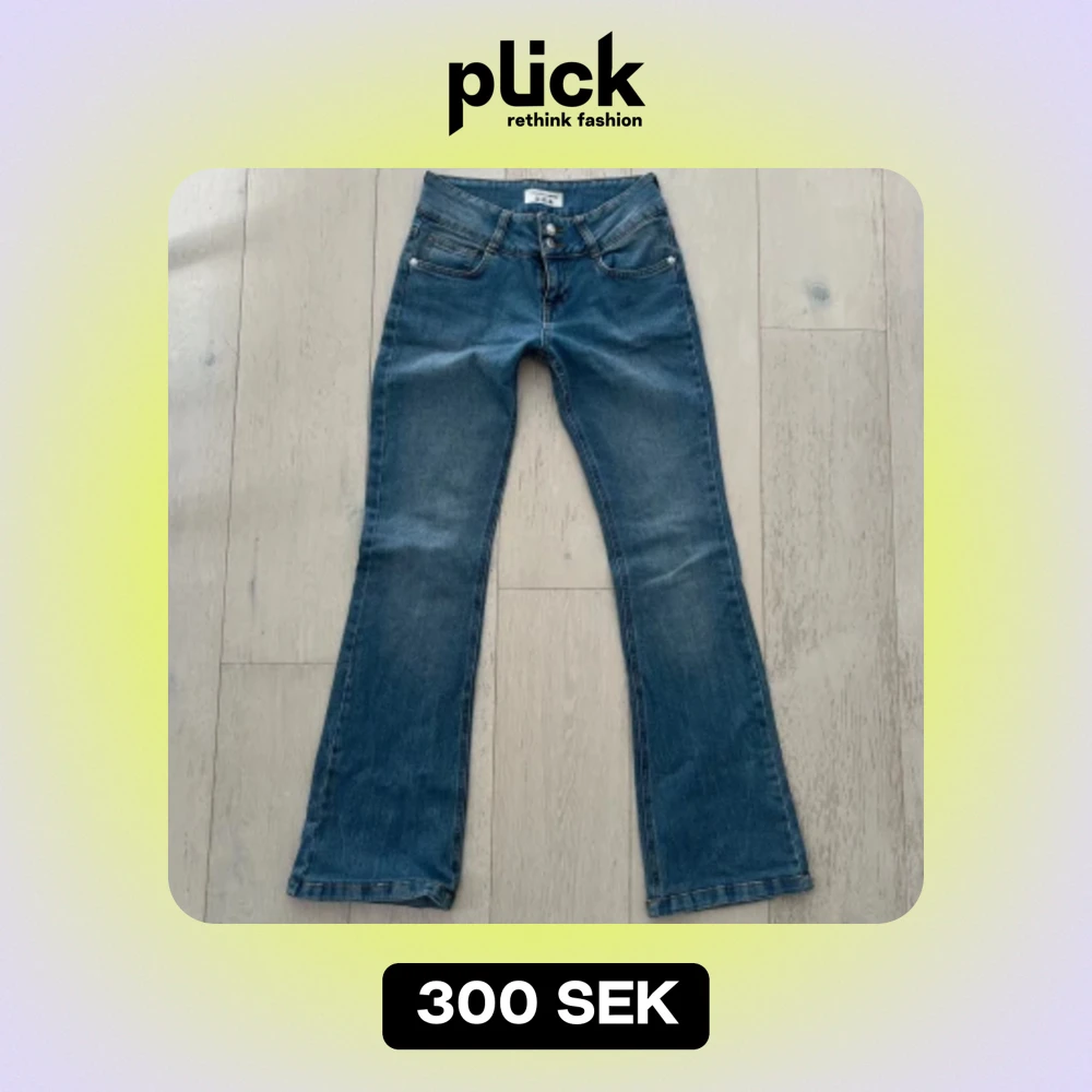 Snygga lågmidjade / mid-rise ljusblå jeans. Så bra skick säljer då jag har för många jeans. Midjemått 37, Längd 99, Innerbenslängd 76 och Grenhöjd 21 💛