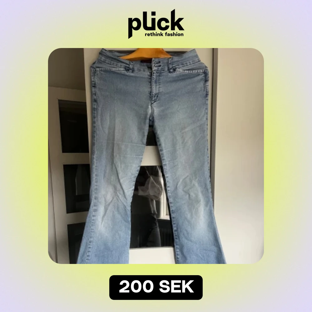 Ljusblåa lågmidjade bootcut jeans, Storlek: 27 Längd: 34, de är något långa på mig som är 167! Så fina utan bakfickor, vilket är en så cool detalj! Pris kan diskuteras utifrån intresset💕