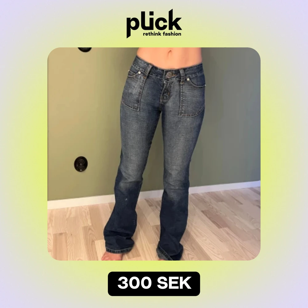 Sjukt fina Lågmidjade Bootcut jeans! Modellen är 165 och jeansen är långa på henne! Storlek 26