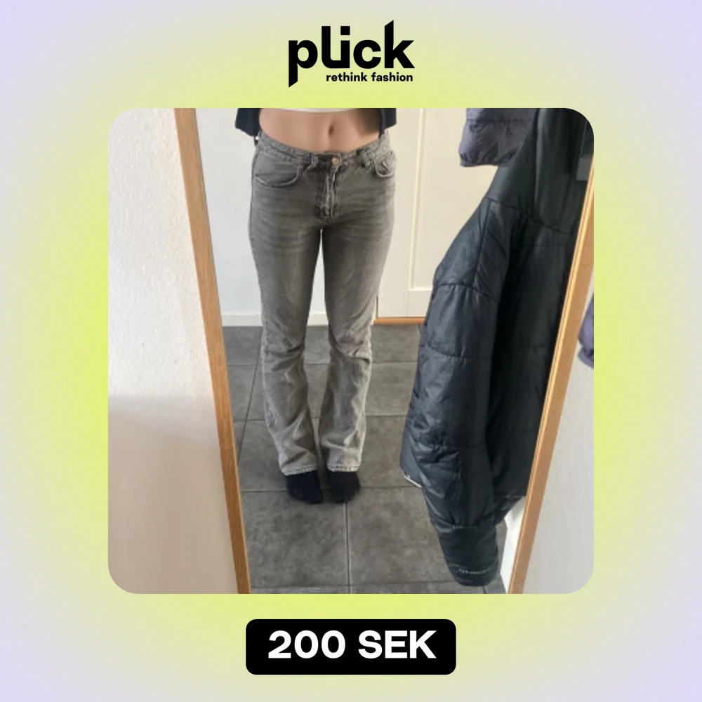 Ett par jätte fina gråa lågmidjade byxor från gina tricot använda cirka 20 gånger är fortfarande i bra skick, jag är 168 och dom passar jätte bra i längden💞