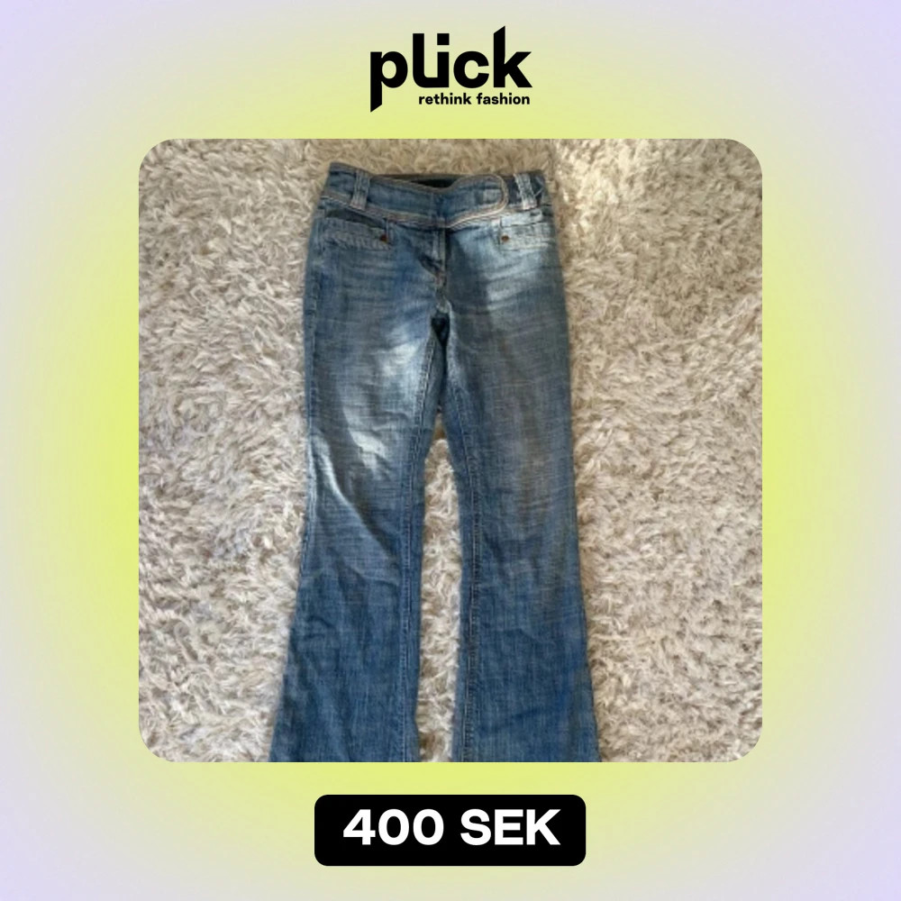 Jättefina lågmidjade jeans, säljer pga dom sitter för tajt. Lite slitningar på baksidan längst ner. På sista bilden står det 98cm, då jag inte hittar någon lapp på storlek!