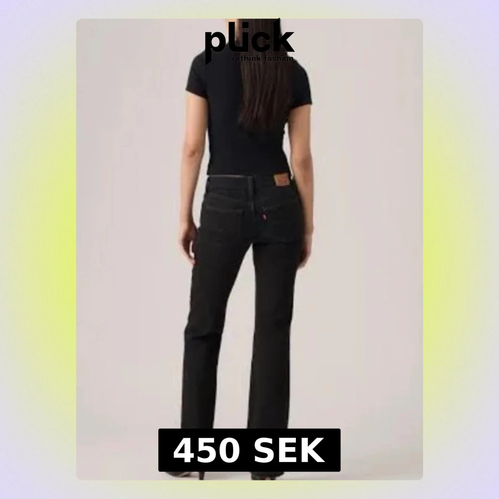 Svarta jeans från Levi's med superlow midja och bootcut-snitt. Klassisk femficksmodell med Levi's patch bak och diskreta sömmar. Jeansen har en rak passform över låren och lätt utsvängda ben, tillverkade i slitstarkt denimtyg. Det är 28/32. Är 165 och bär storlek 36.