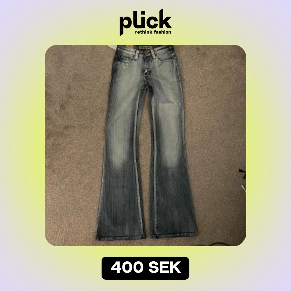 Säljer helt nya, lågmidjade, utsvängda jeans med lappen kvar. Så fina detaljer och cool tvätt! Skriv vid funderingar💗💗 Innerbenslängd: 82, ytterbenslängd: 107 och midjemått: 32💗💗