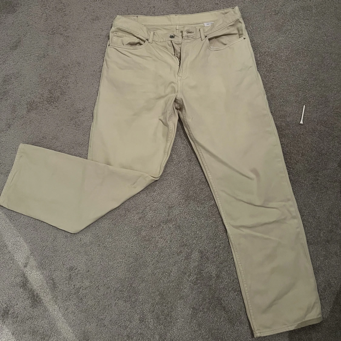 Ett par beigea jeans som är något mellan loose och straight fit. Fint skick golfpeggen ingår.