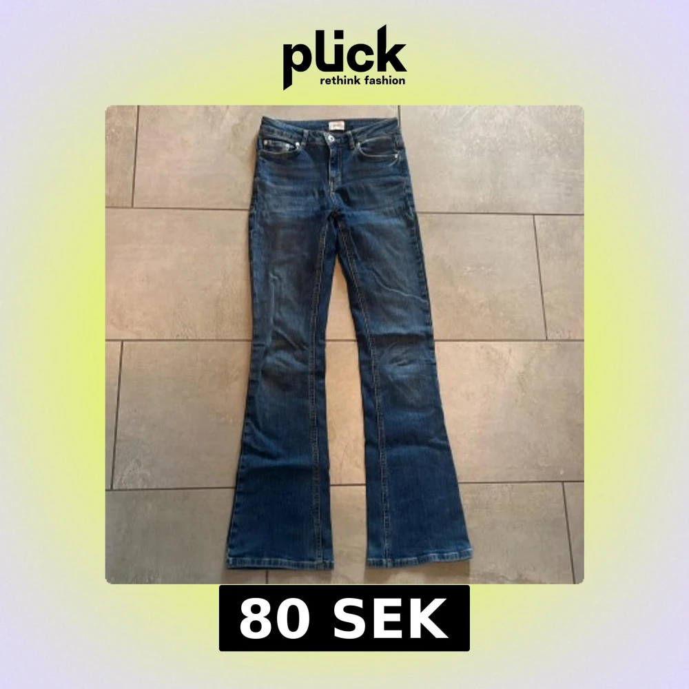 Snygga blå jeans från Grunt med bootcut-passform. Det står storlek 26 men skulle säga att den passar som 32. Tveka inte att skriva till mig om du har frågor eller vill diskutera pris.