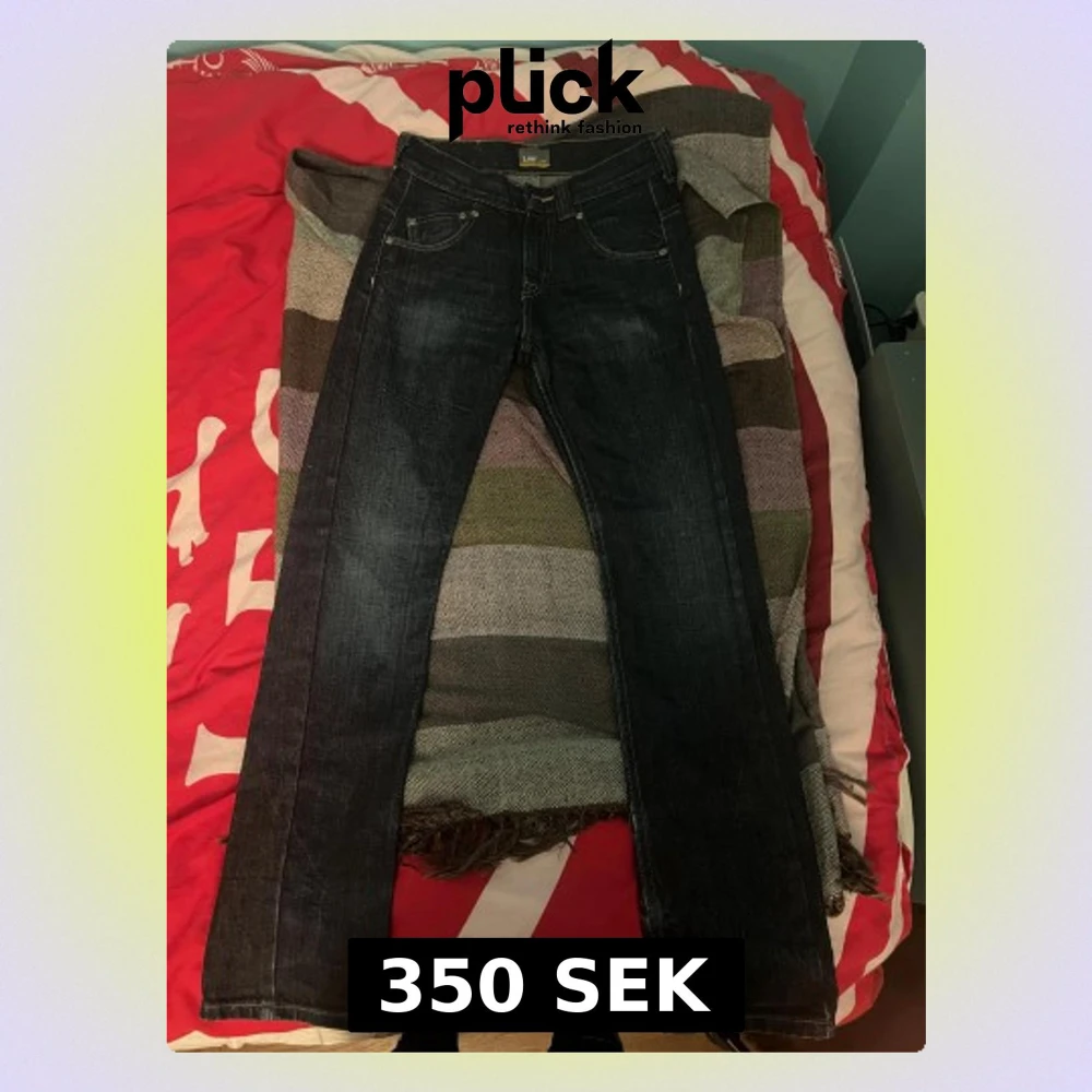 Supersnygga Lee Jeans med mörkblå färg. Har blivit för små för mig men var riktigt sköna så länge som jag kunde ha dom! Inte helt säker på W-storlek men står 12 Y inuti byxorna så skulle gissa på ungefär W 28. Har små små jack i benen men syns nästan inte ens. Pris kan diskuteras. Byxorna har knappt avndvänts. Max tre fyra gånger