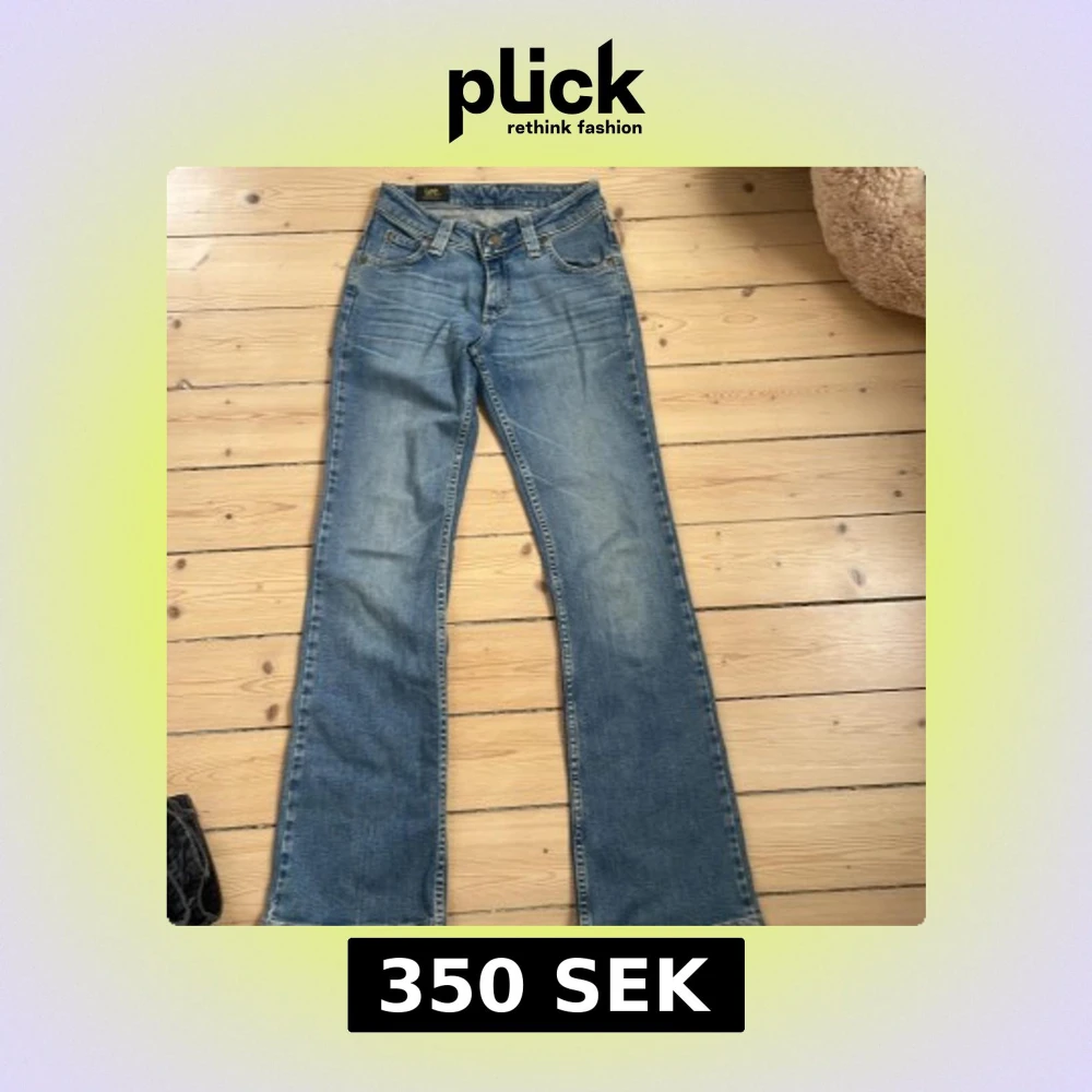 Snygga blå jeans från Lee med bootcut-modell och klassisk femficksdesign. Jeansen har ljus tvätt och subtila slitningar för en avslappnad look. Tillverkade i tåligt denim med Lee-logga på bakfickan och läderpatch i midjan.