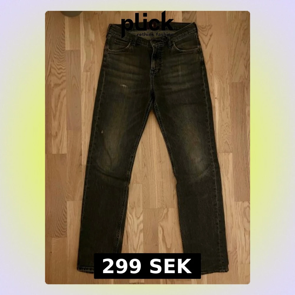 Mörkgråa raka jeans från Lee i modellen West. Jeansen har 2 små hål i bakfickorna utöver det är de i fint skick. Storlek 28/32.
