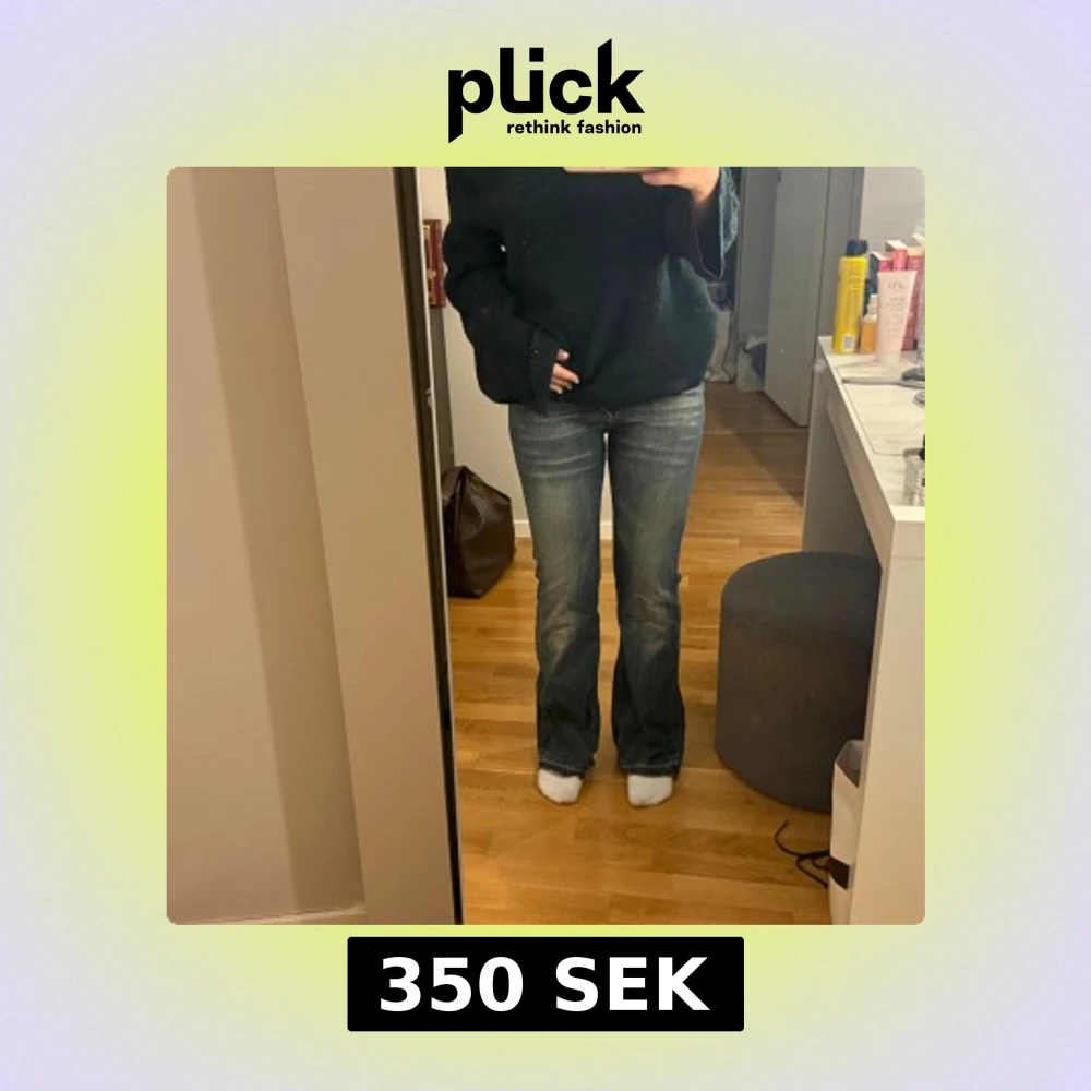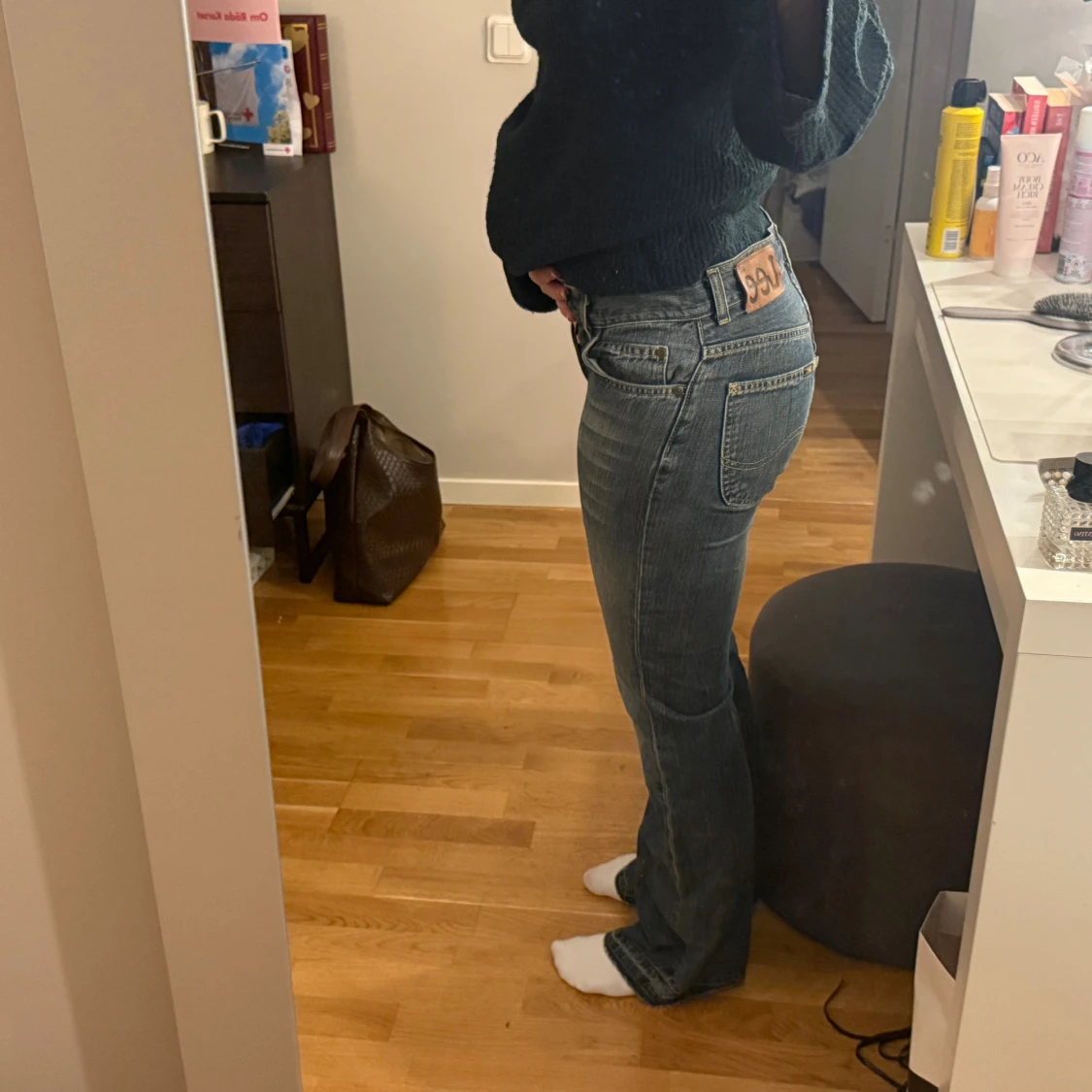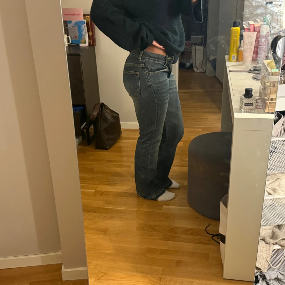 Säljer mina jätte snygga klassiska bootcut jeans från Lee. Jeansen är lågmidjade med snygga slitningar framtill. Säljer då dom tyvär blivit för små för mig.