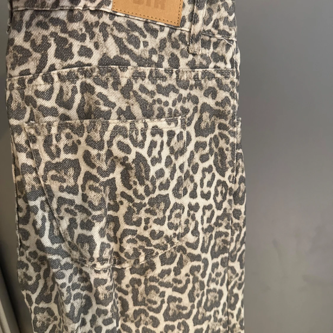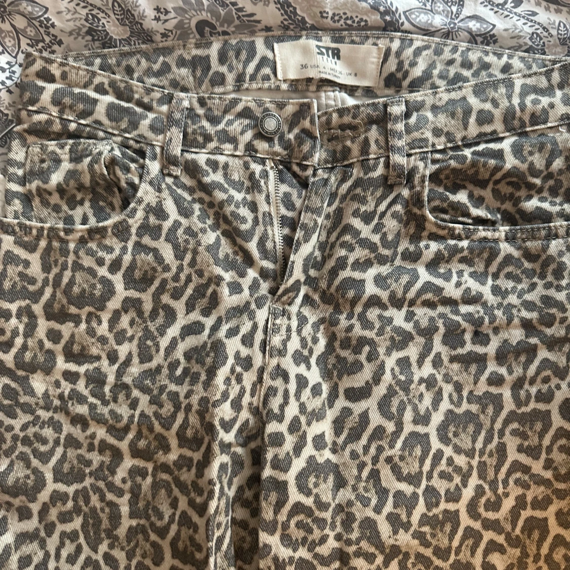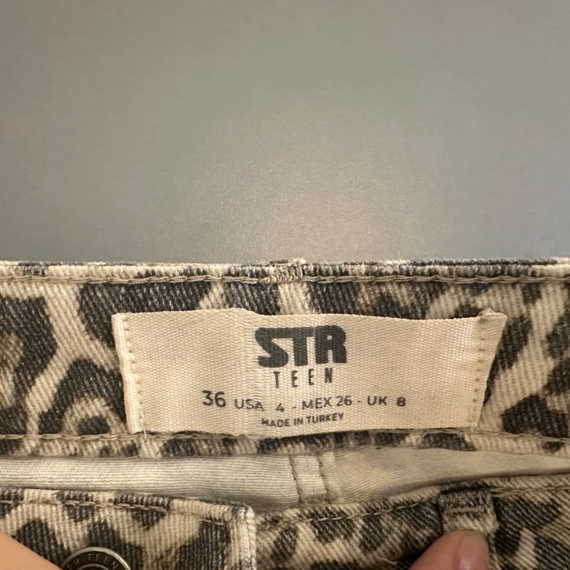 Snygga jeans från STR Teen i beige och grått leopardmönster. Jeansen är raka i modellen. Köpta utomlands och använda 1/2 gånger.