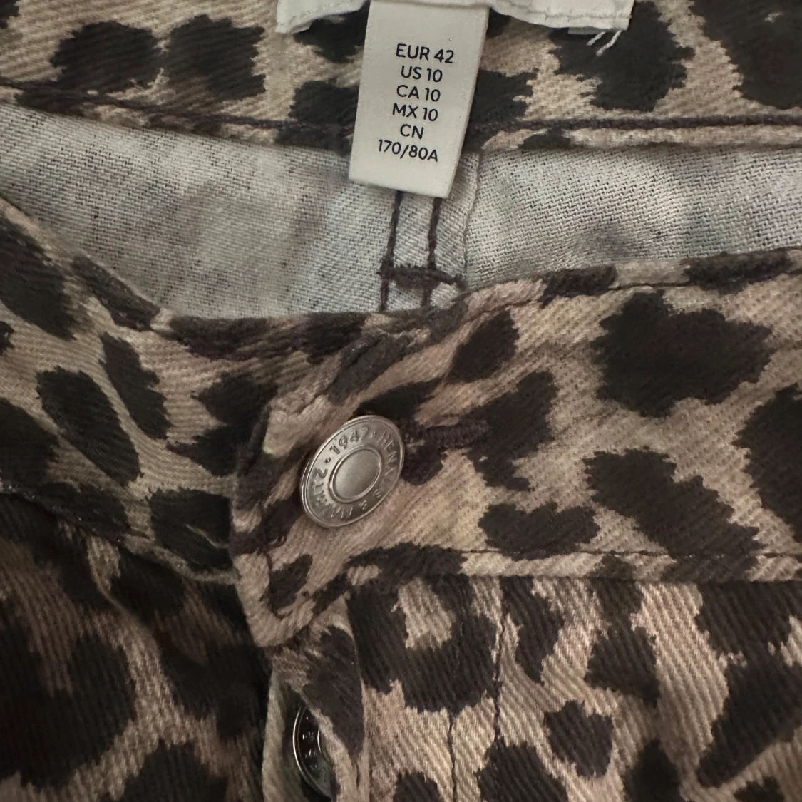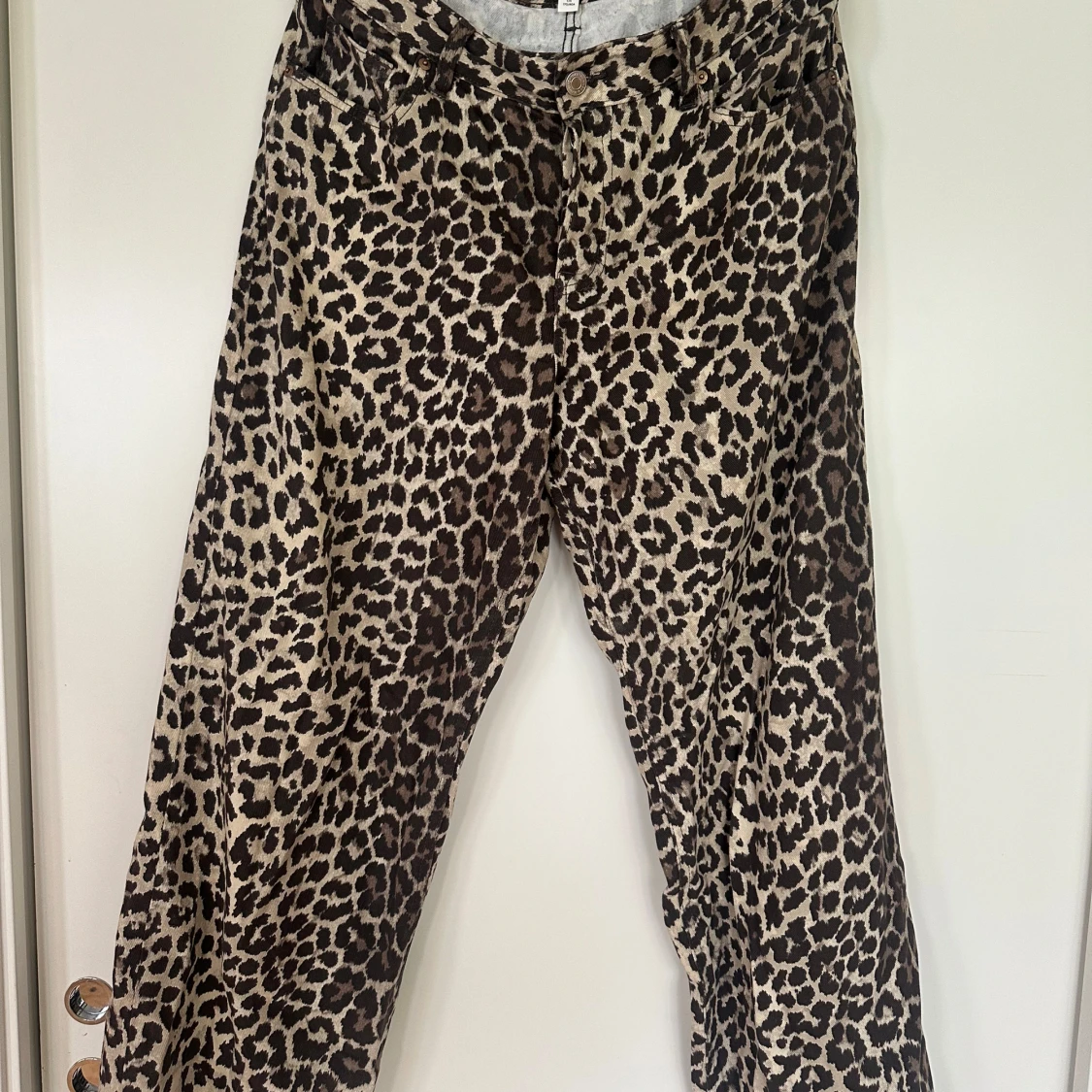 Säljer ett par snygga byxor med leopardmönster. Byxorna har klassisk femficksdesign, raka ben och knäppning fram. Perfekta för dig som vill sticka ut med ett djurmönstrat statement-plagg.