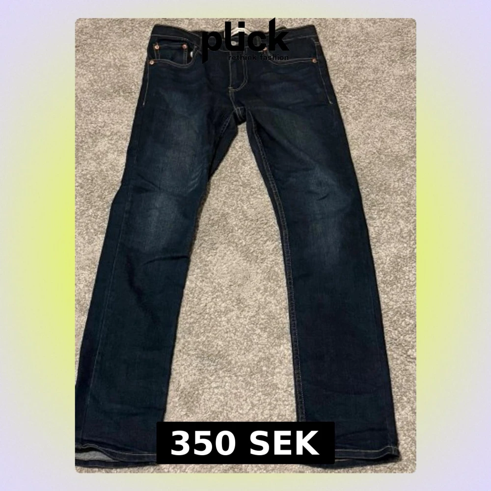 Säljer ett par Levi's 512 jeans i mörkblå tvätt med klassisk femficksdesign och kontrastsömmar. Modellen har en slim passform och är tillverkad i en mjuk blandning av bomull, polyester, viskos och elastan för extra komfort och stretch. Perfekt för dig som gillar stilrena jeans.