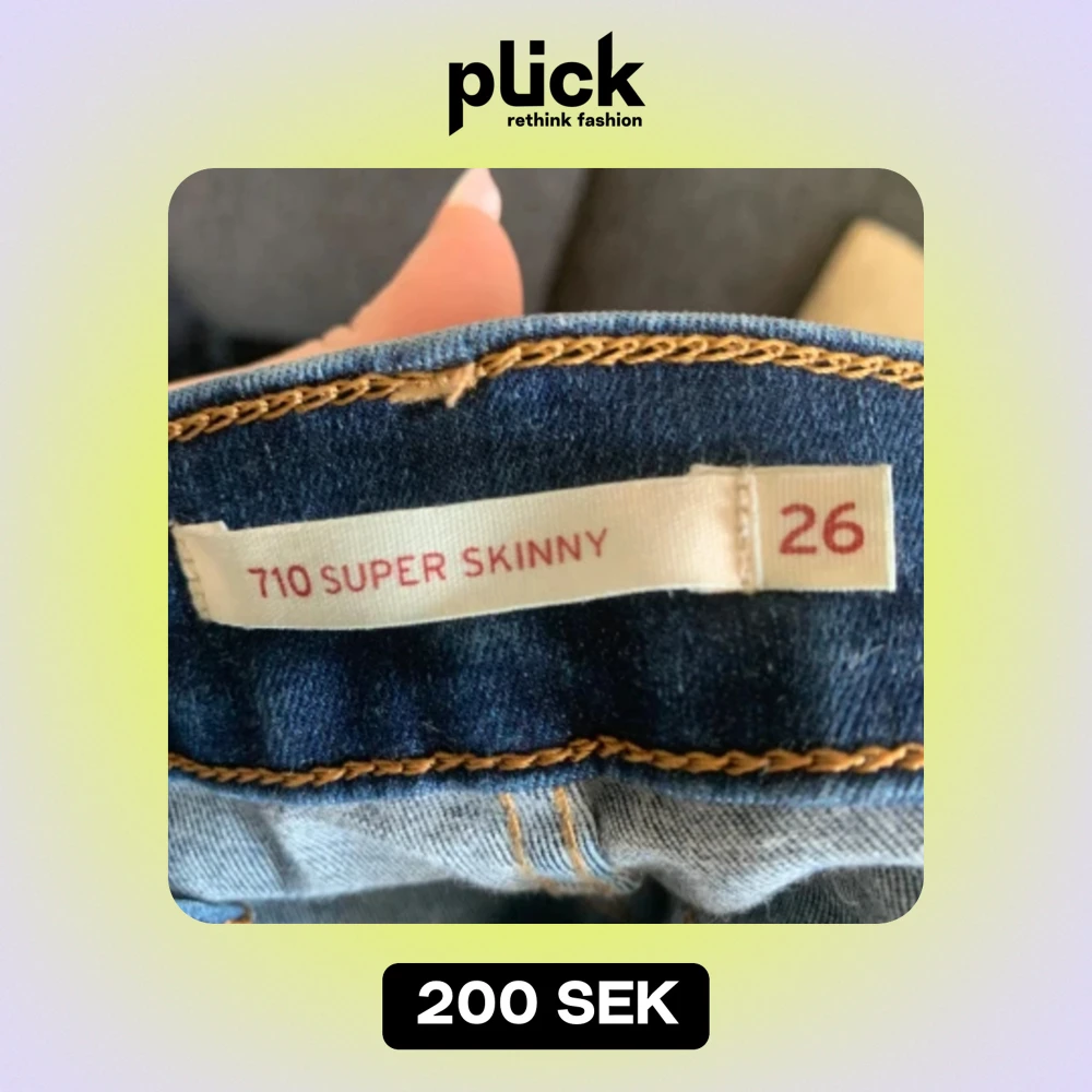 Säljer ett par snygga Levi's 710 Super Skinny jeans i klassisk blå denim. De är i storlek 26 och har den ikoniska Levi's-lappen baktill. Perfekta för en casual look och passar till det mesta i garderoben. Superbekväma och stilrena!