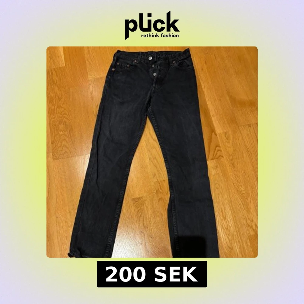 Snygga svarta jeans från Levi's med klassisk femficksdesign och knappgylf. Perfekta för en stilren look. stolek w29L34