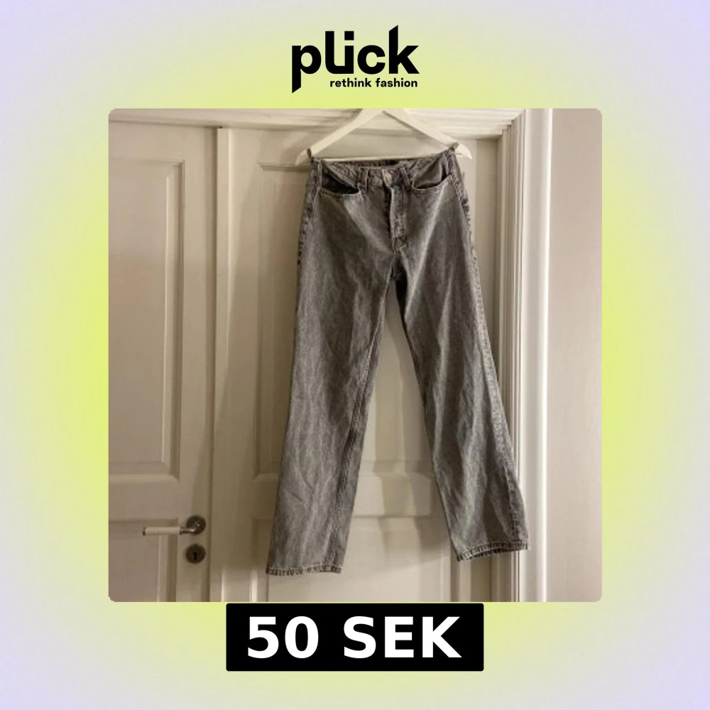 Säljer ett par klassiska grå jeans med rak passform och normal midja. Jeansen har fem fickor, knappgylf och är tillverkade i slitstarkt bomullsdenim. Perfekt för dig som gillar tidlös stil och vill ha ett par jeans som funkar till allt.