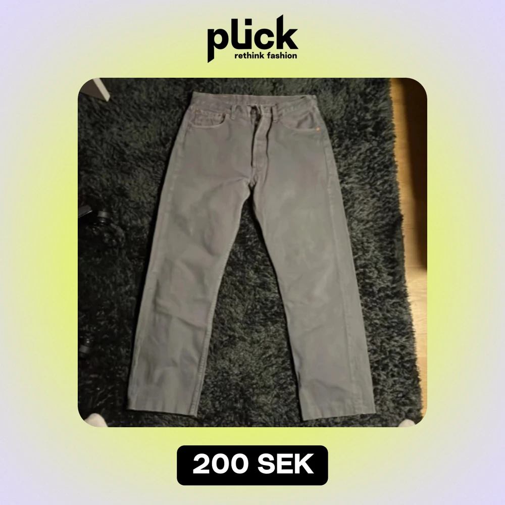 Tjena! Ett par feta gråa 501or som tyvärr är för små för mig. Dessa är skitsnygga och jag är djupt besviken att de blivit för små. På byxorna står det w33 l34 men de är mycket mindre och snarare 30-30. Om ni vill ha några mått bara säg till!