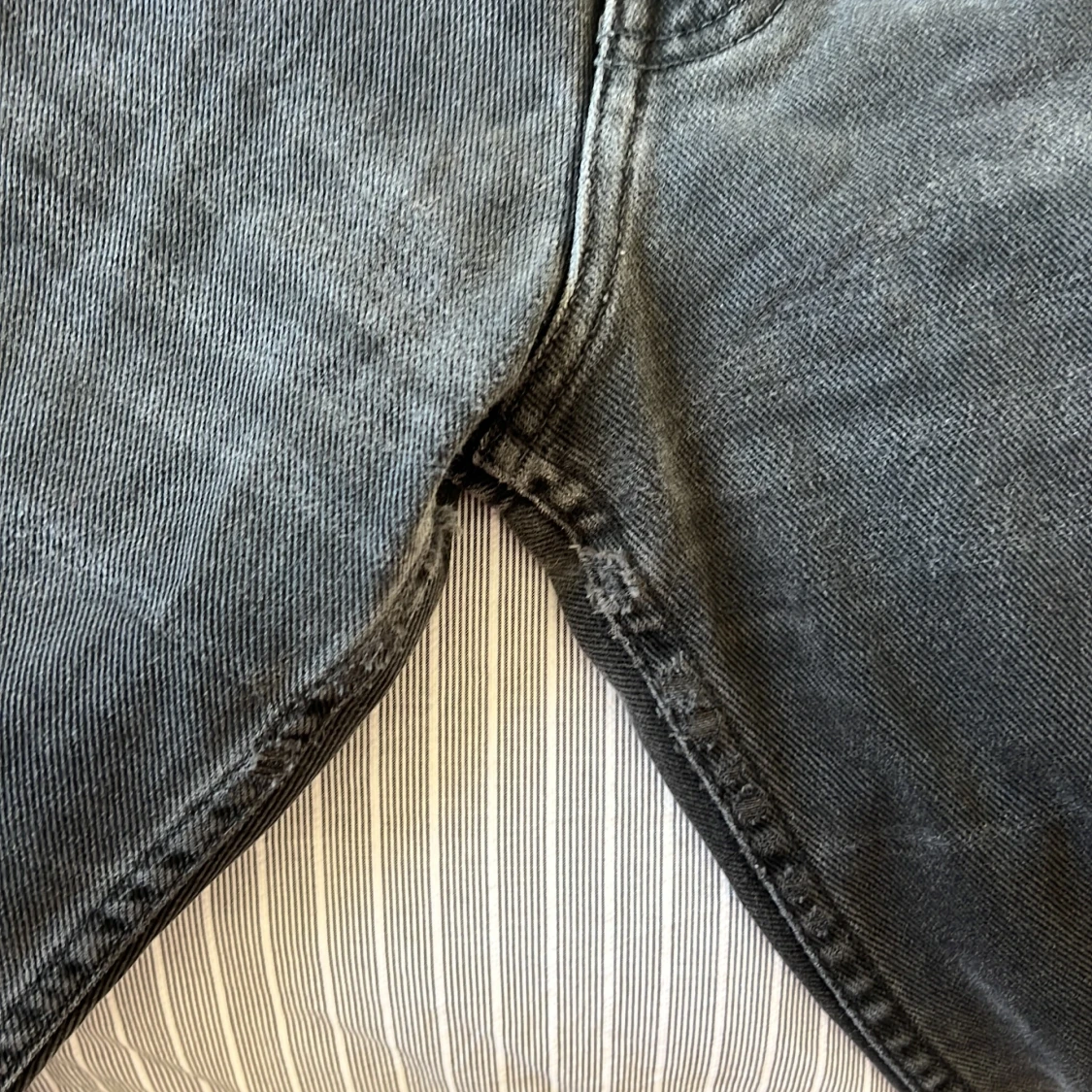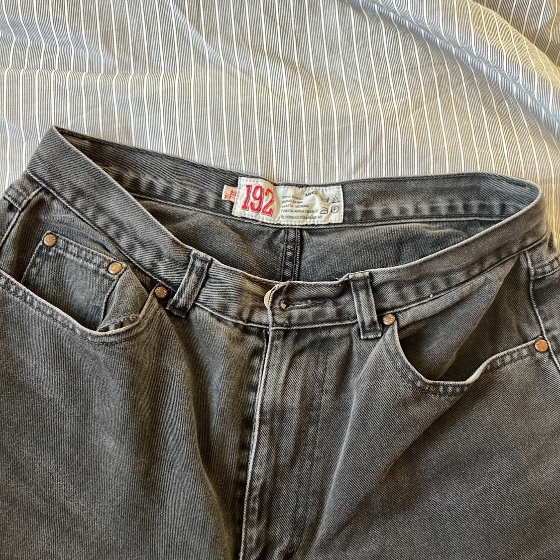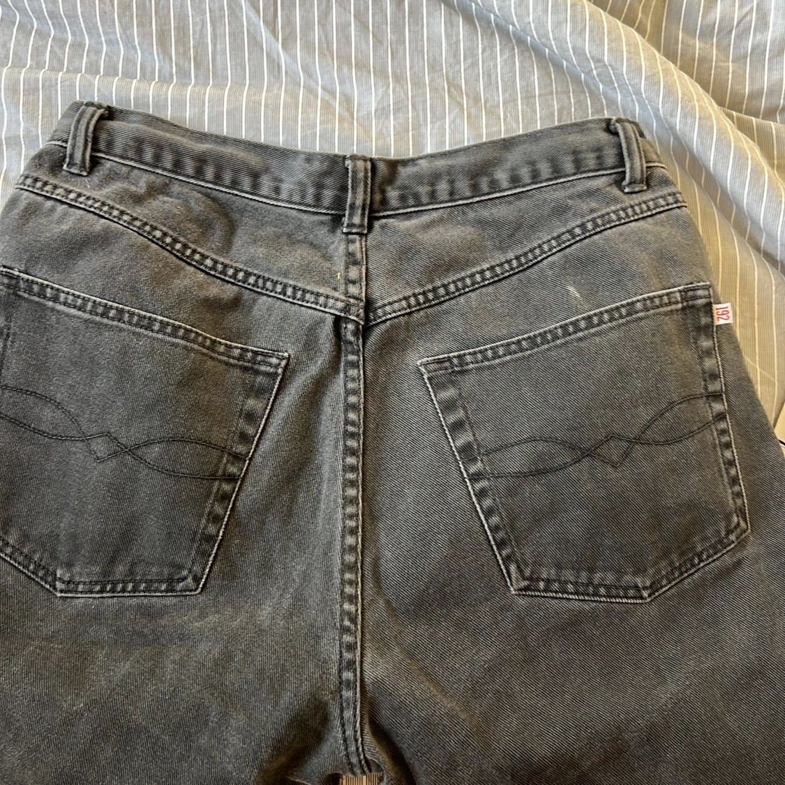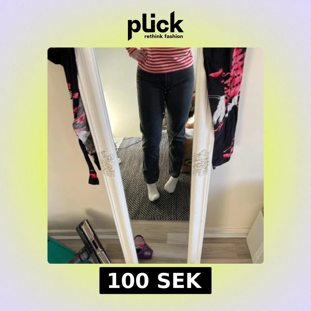 Säljer ett par klassiska svarta jeans med raka ben och hög midja, sitter som levis 501 typ. Jeansen har fem fickor, knappgylf och snygga sömdetaljer på bakfickorna. Jag är 175, lite korta på mig, samt lite tighta i midjan.