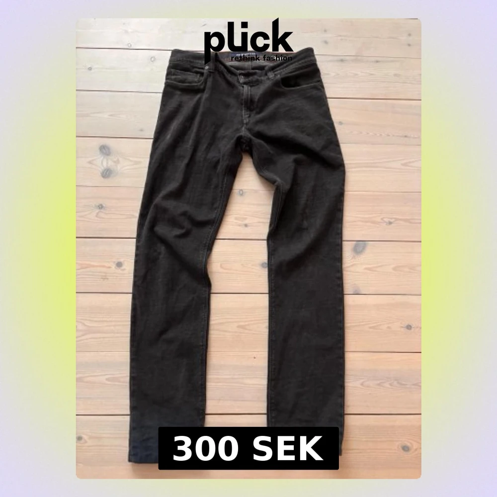 Svarta jeans från Alberto med klassisk femficksdesign och raka ben. Snygga orangea sömmar på insidan och diskret svart patch med perforerat mönster bak. Jeansen har normal passform och är tillverkade i bomull med lite stretch för extra komfort. Skick 9/10, storlek 31/34 men sitter som 31/32!
