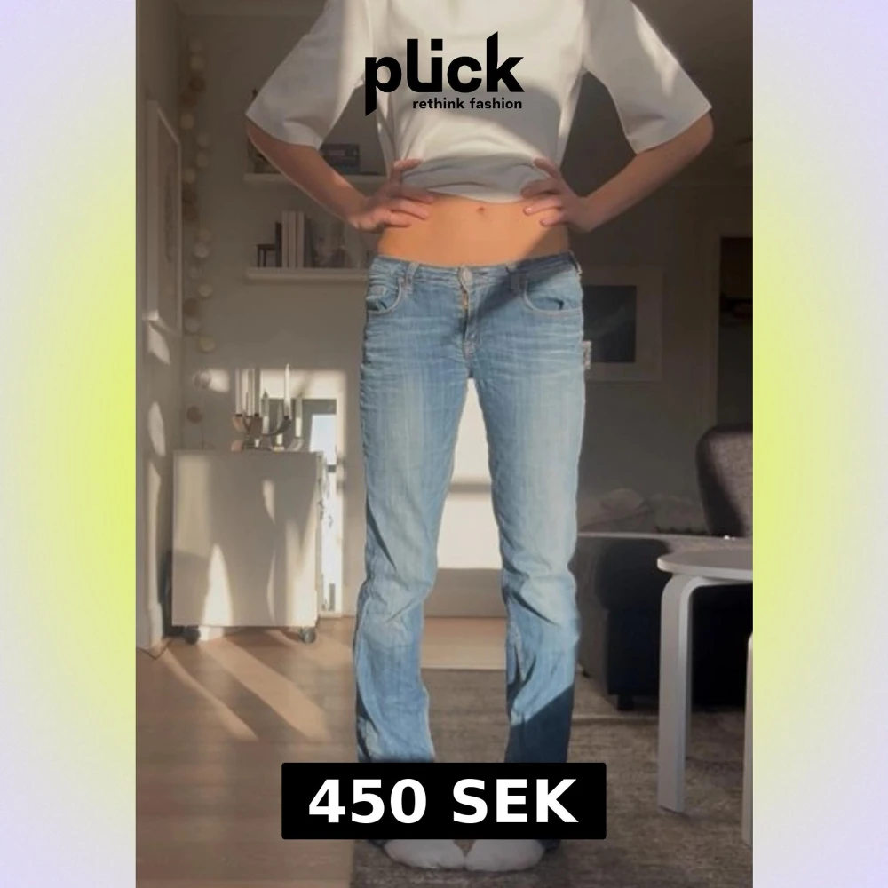 Säljer ett par klassiska blå jeans från Levis med låg midja som inte finns längre. Dessa är fint insydda i midjan som inte synes. Passar mig perfekt som är 174cm och har storlek 34/36