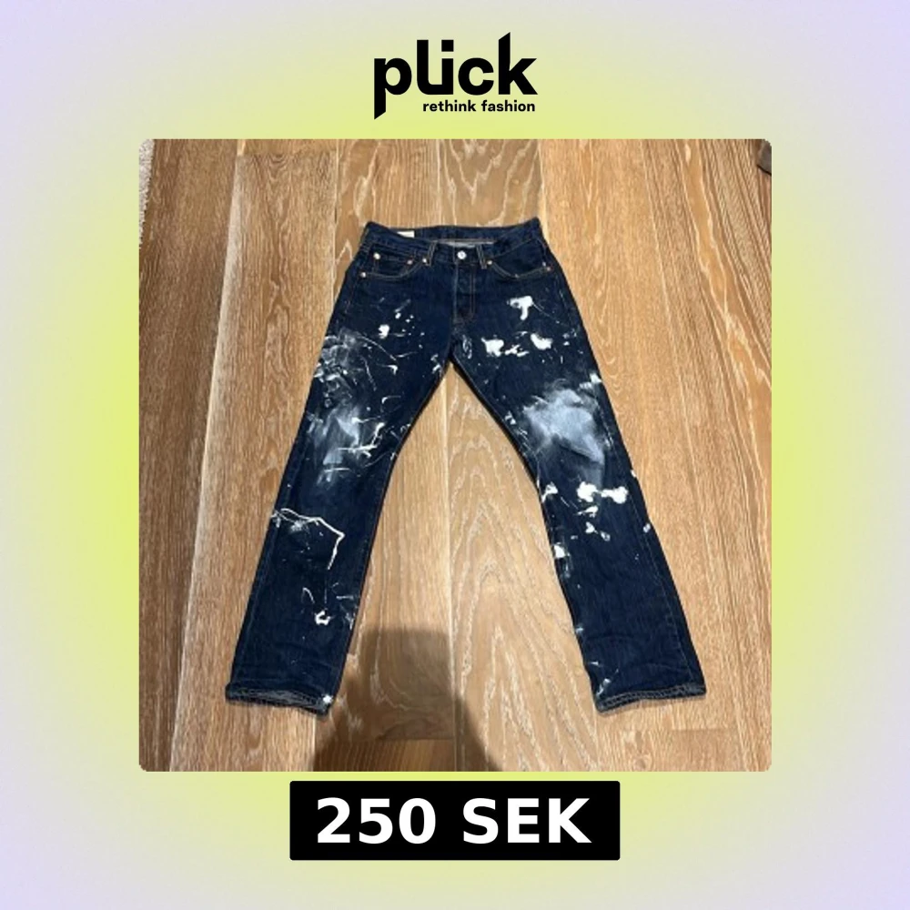 Mörkblå Levi's 501 jeans med unika vita färgfläckar. Kalla de för kvarg byxor dq2 byxor eller vad som hälst,i allla fall de är customize brallor .