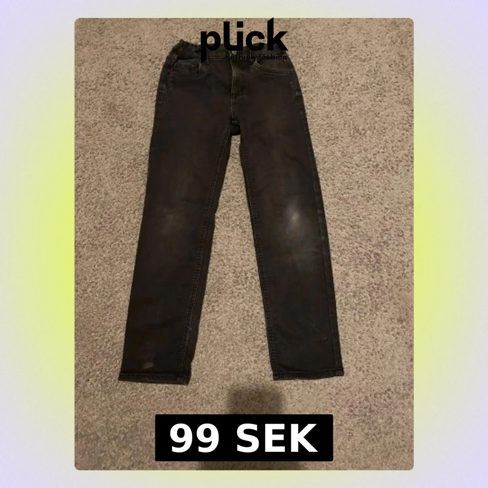 Svarta jeansbyxor från Lindex i storlek 152. Klassisk femficksmodell med rak passform och resår i midjan för extra komfort. Snyggt slitna detaljer och knappstängning framtill. Perfekt för dig som gillar enkel och stilren look.