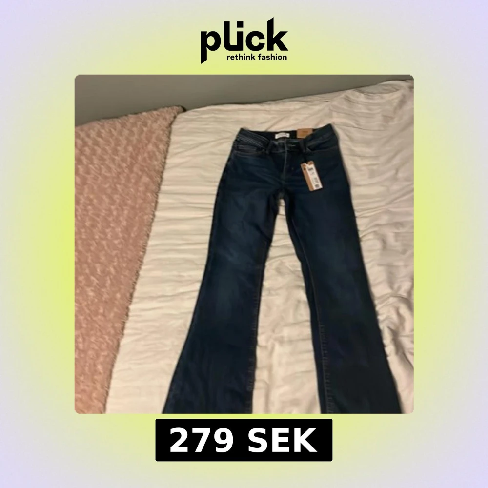 Snygga mörkblå jeans från Lindex, modell Freja med flare leg och regular waist. Klassisk femficksdesign och skön passform. Perfekta för dig som gillar en trendig siluett med utsvängda ben. Materialet är mjukt jeans-tyg i bomullsmix. Passar för dom som har lite bredare lår. Är aldrig använda eftersom dom inte passade. Skriv om du har någon fundering😊