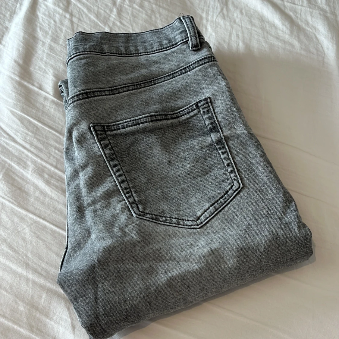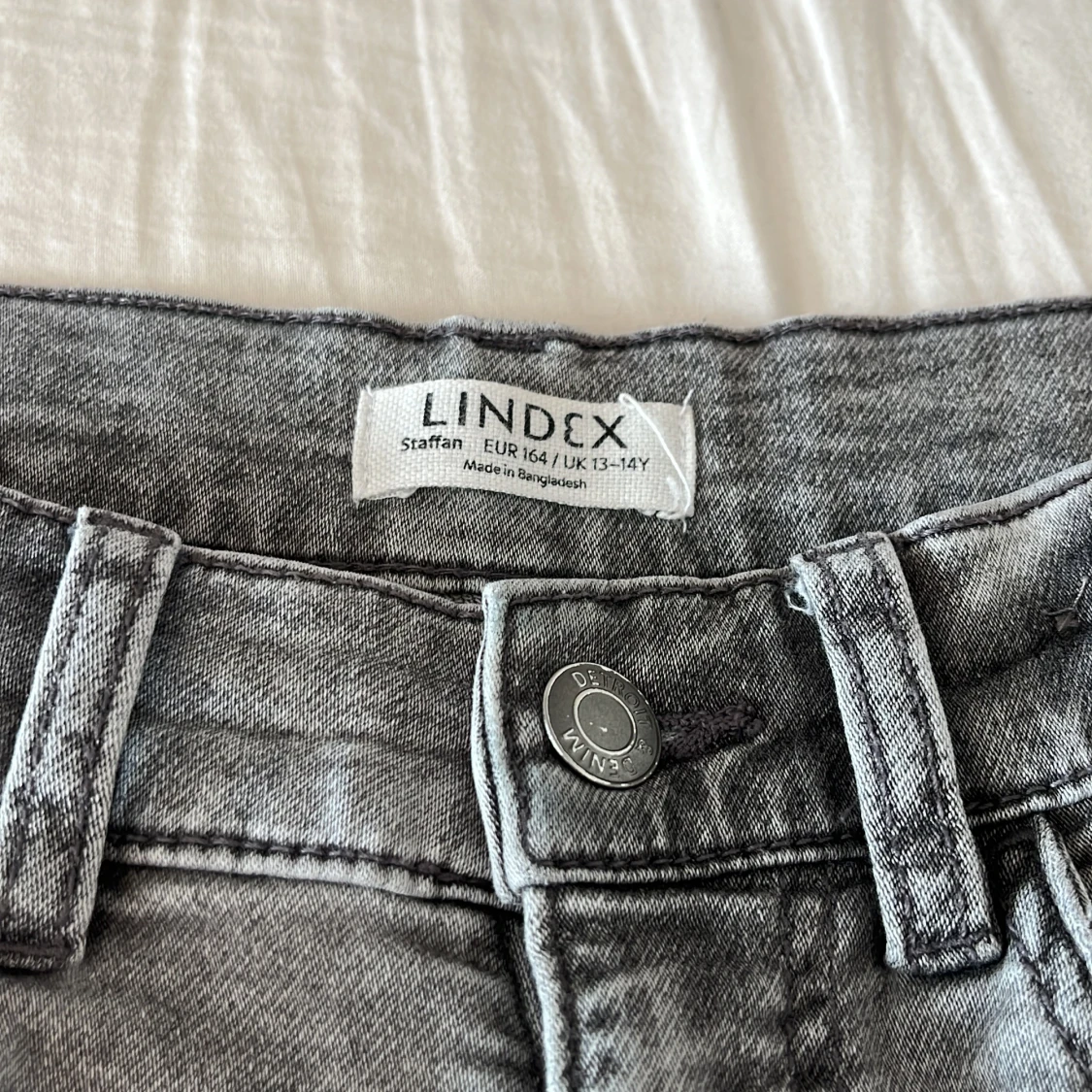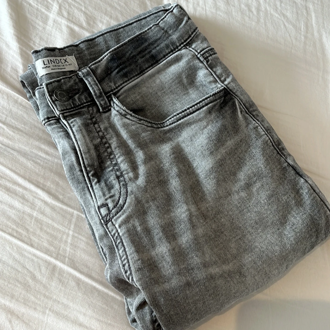 Snygga grå jeans från Lindex i rak passform. Klassisk femficksmodell med bälteshällor och knappstängning. Jeansen har en tvättad look och är tillverkade i mjuk bomullsdenim. Perfekta för dig som gillar en enkel och stilren vibe. Väldigt bra skick. Hör av er om frågor eller prisförslag.