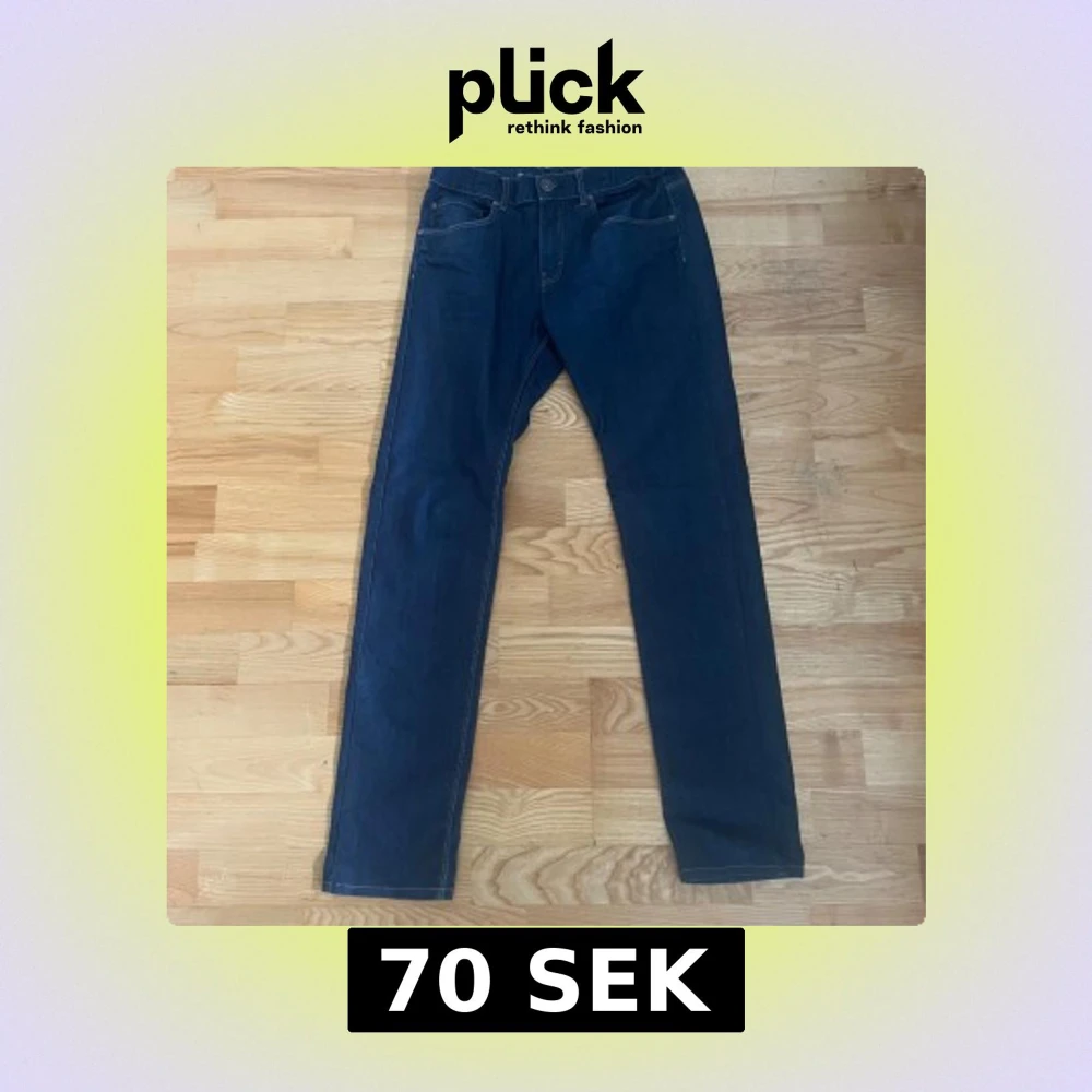 Mörkblå jeans från Lindex i modellen Narrow med smal passform. Klassisk femficksdesign, normalhög midja och raka ben. Snygga kontrastsömmar och stretchigt denimtyg som sitter skönt hela dagen.