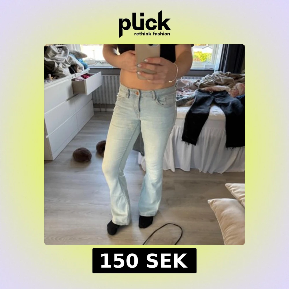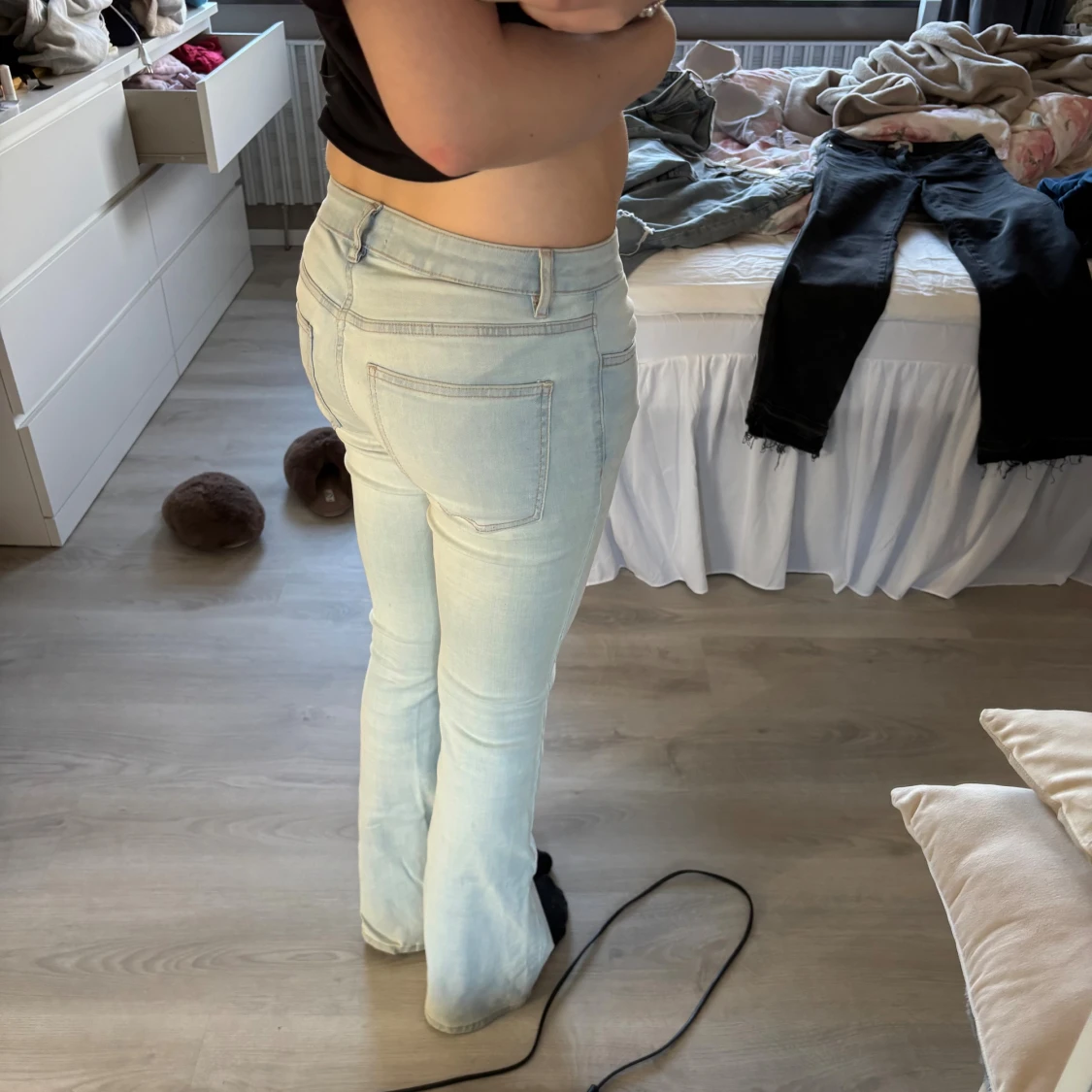 Ljusblå jeans med lite utsvängda ben. Superbekväma och sitter snyggt! Använda bara några gånger, i fint skick. Skriv vid frågor och funderingar🫶🏻 är öppen för att förhandla om priset