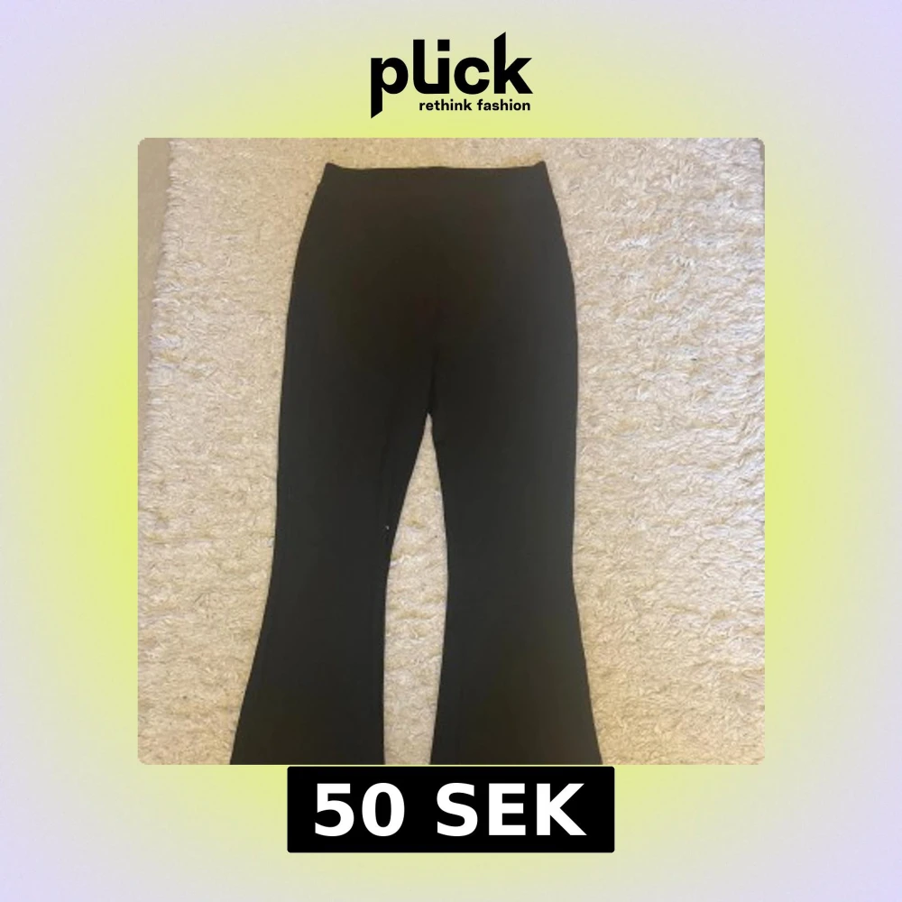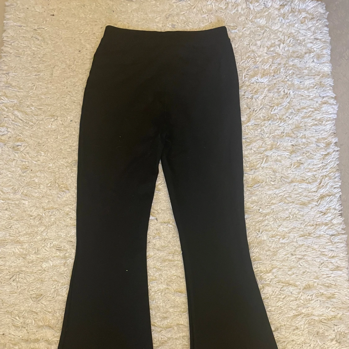 Svarta bootcut byxor från Lindex i storlek 170. Byxorna har en hög midja och är tillverkade i ett mjukt och stretchigt material som sitter skönt. Snyggt utsvängda ben ger en trendig siluett. Perfekta för dig som gillar stilrena och bekväma plagg. Dessa är använda men i gott skick.