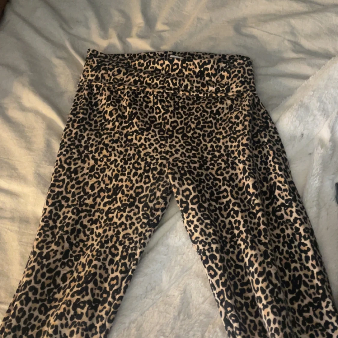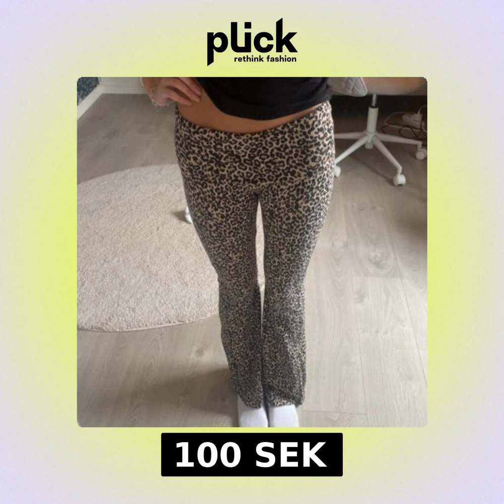Säljer ett par snygga leopardmönstrade byxor från Lindex i storlek 170. Byxorna har låg midja och är i en beige och svart färgkombination. Modellen är bootcut med lite utsvängda ben och stretchigt material som sitter skönt. Perfekt för dig som gillar djurmönster!