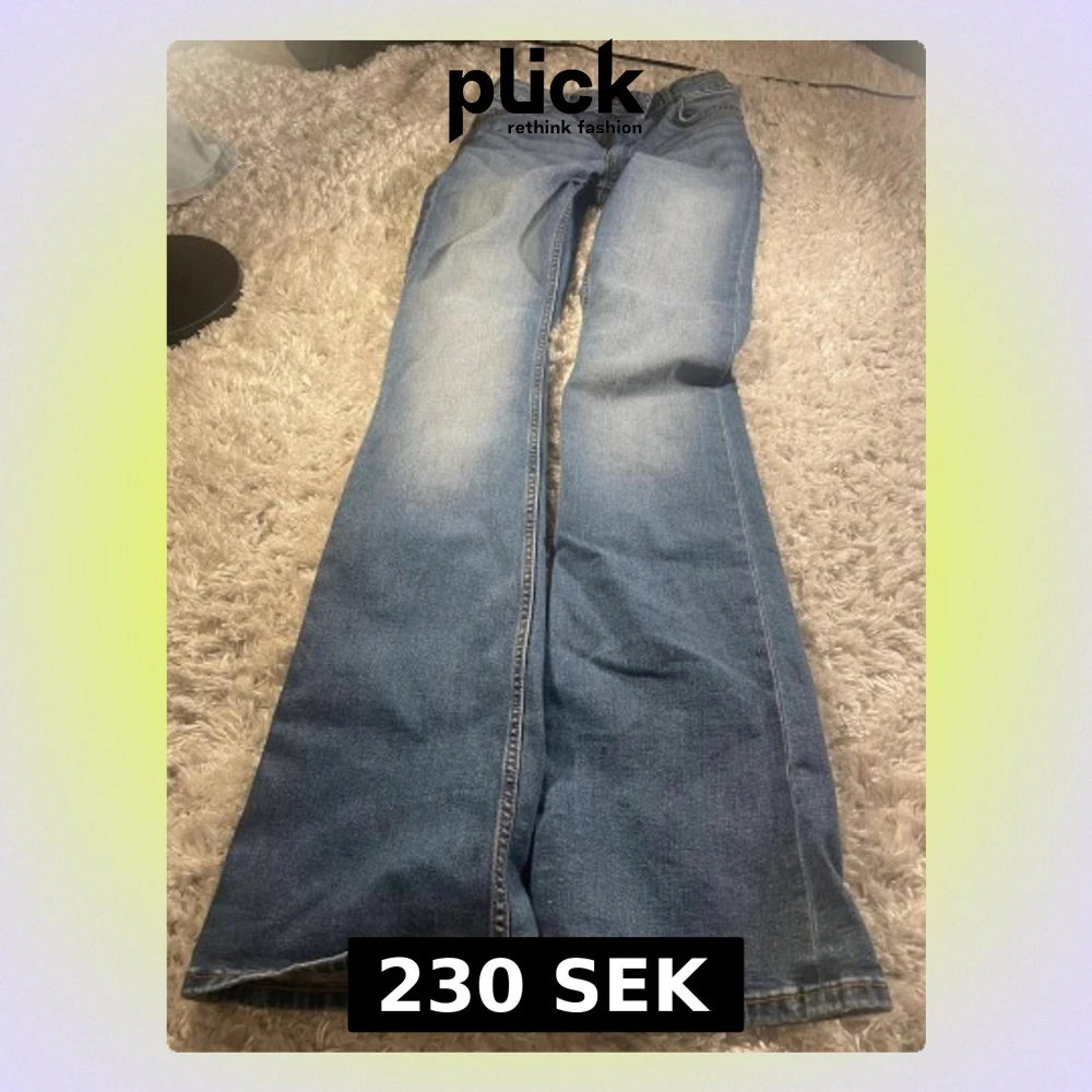 Snygga blå jeans från Lindex i klassisk bootcut-modell. Jeansen är i bra skick!💞 Jöpte from för 599kr och är använda vördsamt💗💗