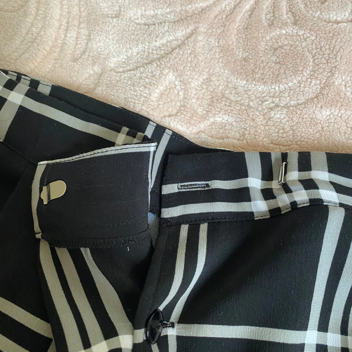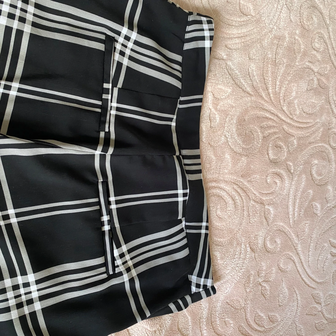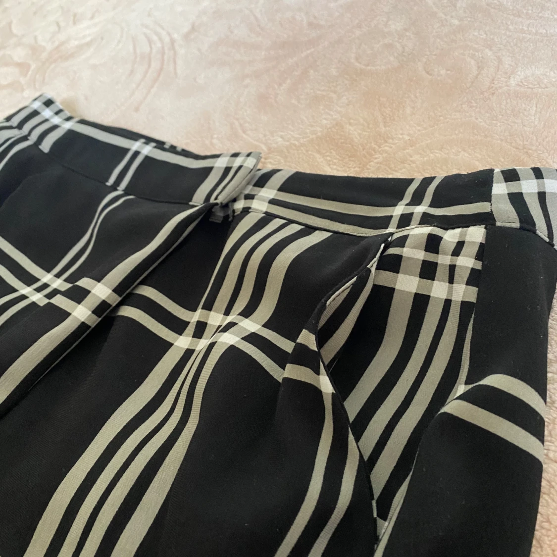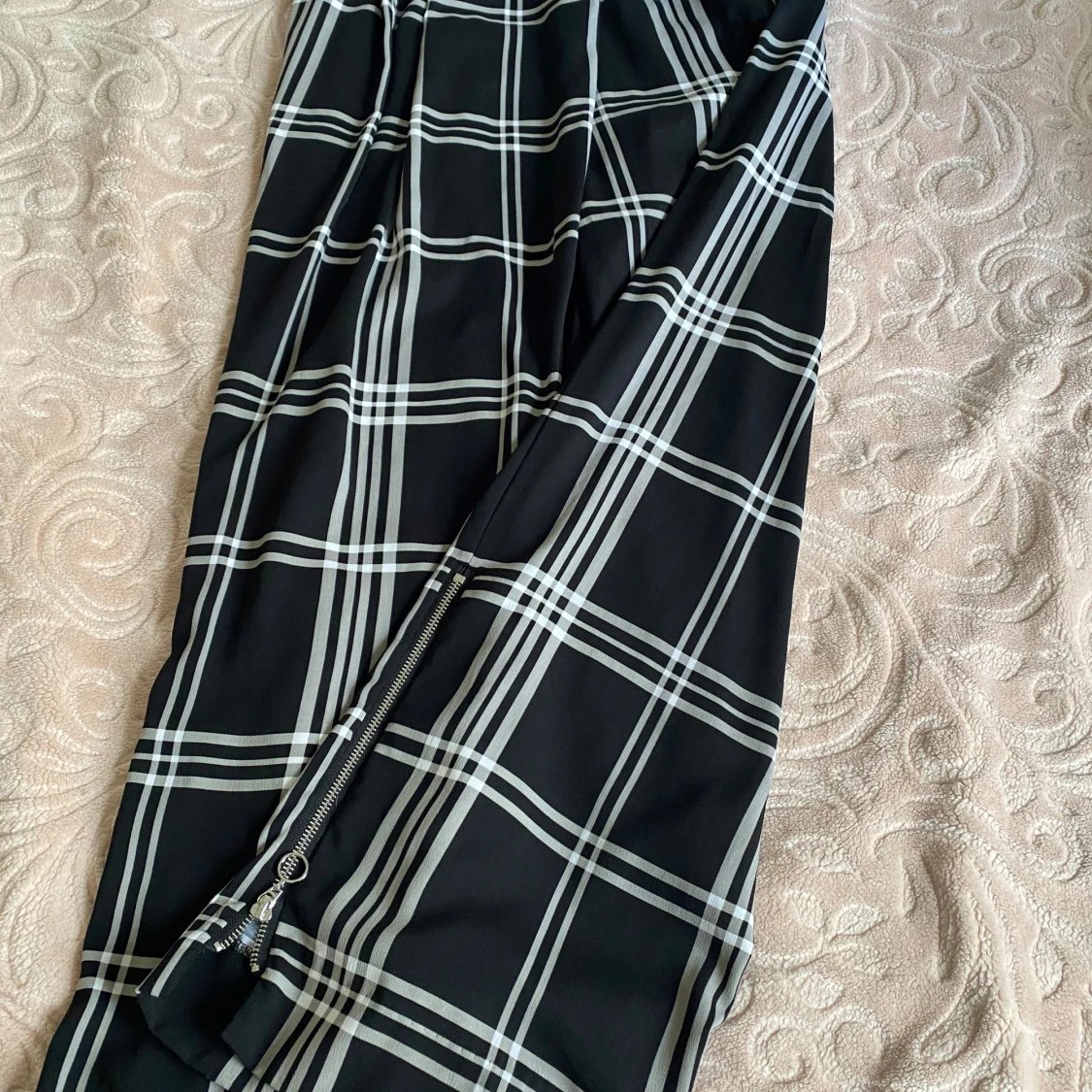 Snygga svarta byxor med vitt rutmönster. De har en dragkedja på sidan och en stilren design. Super sköna och luftiga med tunnt material 💞priset går att diskutera💗köpte på Lindex.