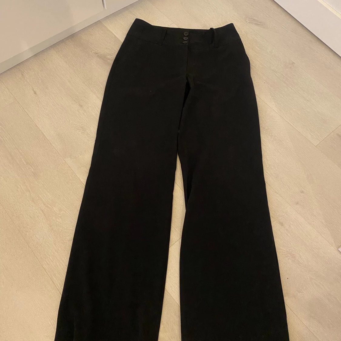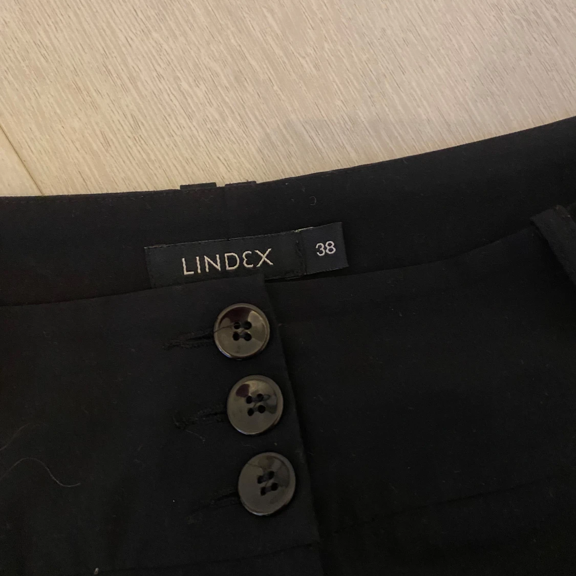 Snygga svarta byxor från Lindex med tre knappar framtill. Byxorna har en rak passform och är perfekta för en stilren look. Aldrig använda!