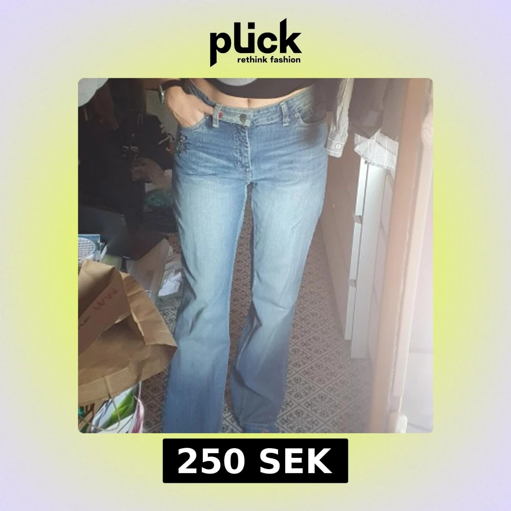 Säljer ett par mellanblå bootcut jeans från Lindex, skulle säga att storleken är 40/42. Är ca 173 cm. Tidigare köpt här på plick. Köpare står för eventuell frakt.