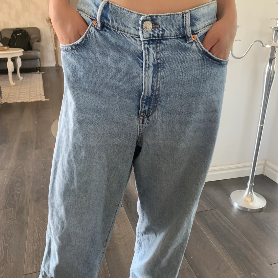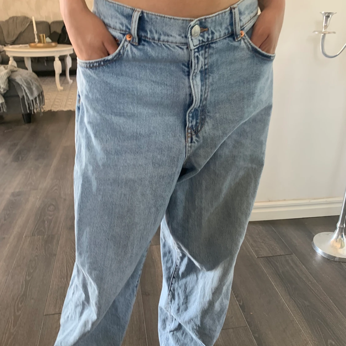 Blå jenas från lindex, här får ni två perspektiv hur dom sitter, första personen är en xs/s människa medans 2 är M människa, jättefina och använt fåtal ggr, frakten blir förmodligen hög eftersom d är ett par jenas.💙 nypris 300kr