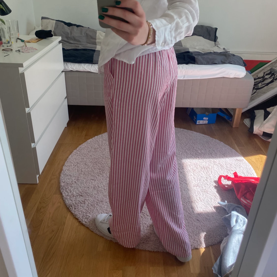 Superfina trendiga rosarandiga byxor från mango. Har sytt upp dem ca 10 cm så de passar mig som är 165!