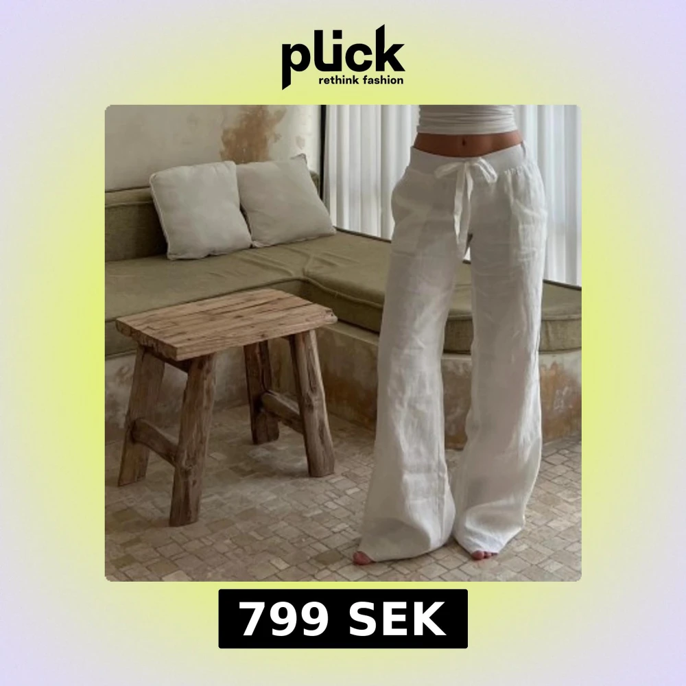 Alobha Label linnebyxor dupe - Så snygga vita linnebyxor som är en dupe på Alobha Label linnebyxorna. Kan tyvärr inte skicka egna bilder med hur de sitter på då de inte passar mig. Det står ingen storlek i de men de passar min kompis som brukar ha S/M i byxor.