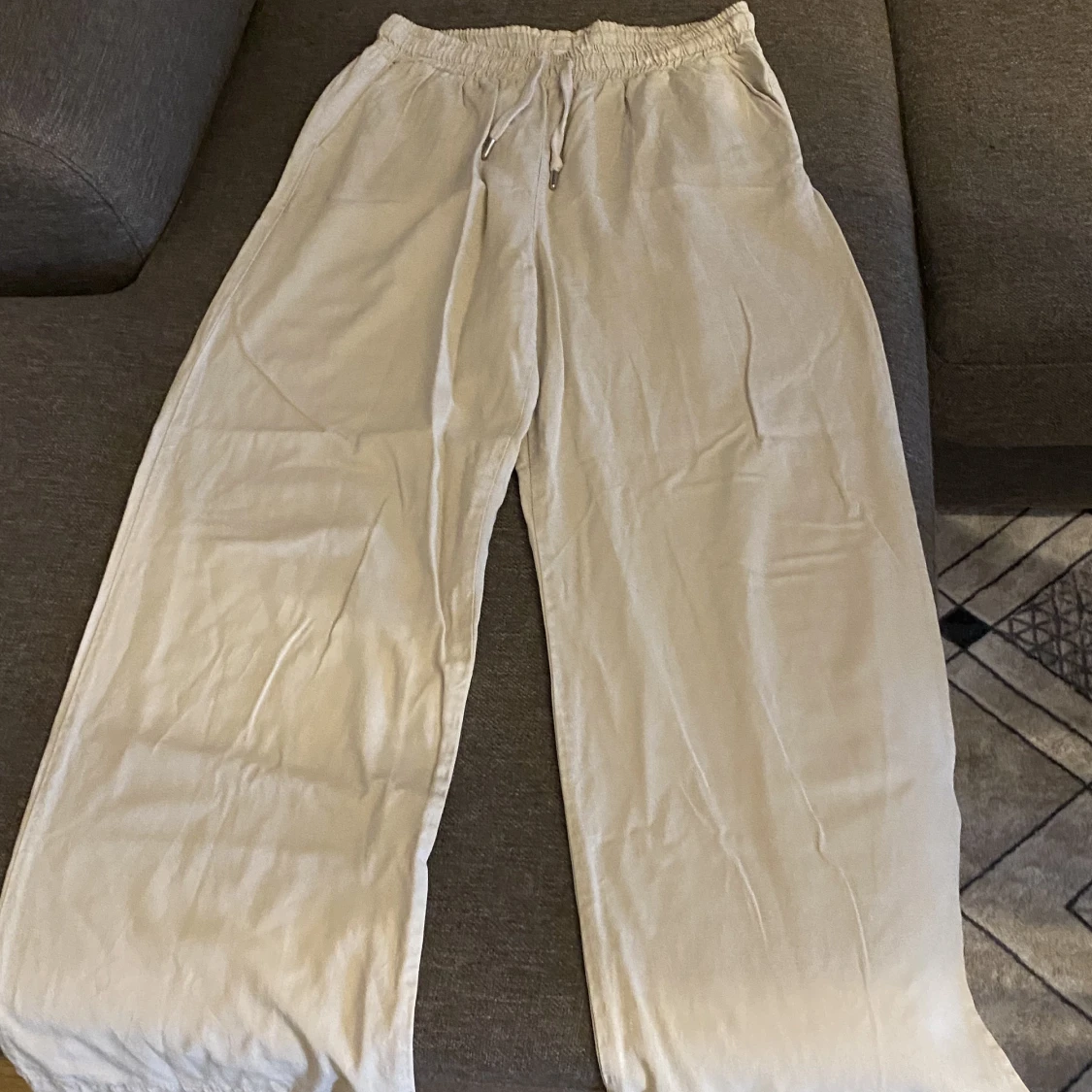 Linnebyxor i storlek 38. Har slitningar, därav priset. Frakt tillkommer.