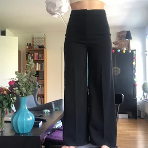 Jättesköna (och snygga) byxor som är väldigt höga i midjan. Går precis ner till fötterna på mig som är 160 🌸🌸 Storlek: XS