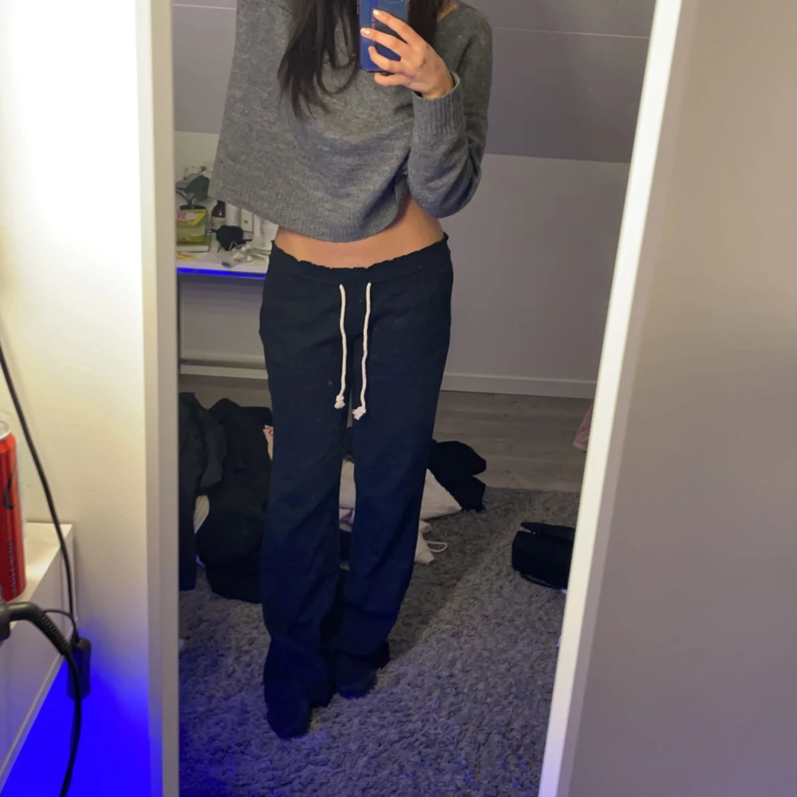 köpte för 600kr på zalando, sparsamt använda. byxorna är uppsydda, jag är 166cm och dom passar perfekt. säljer då dom tyvärr inte kommer mycket till användning. byxorna är i storlek M men passar mig som brukar bära S/XS.